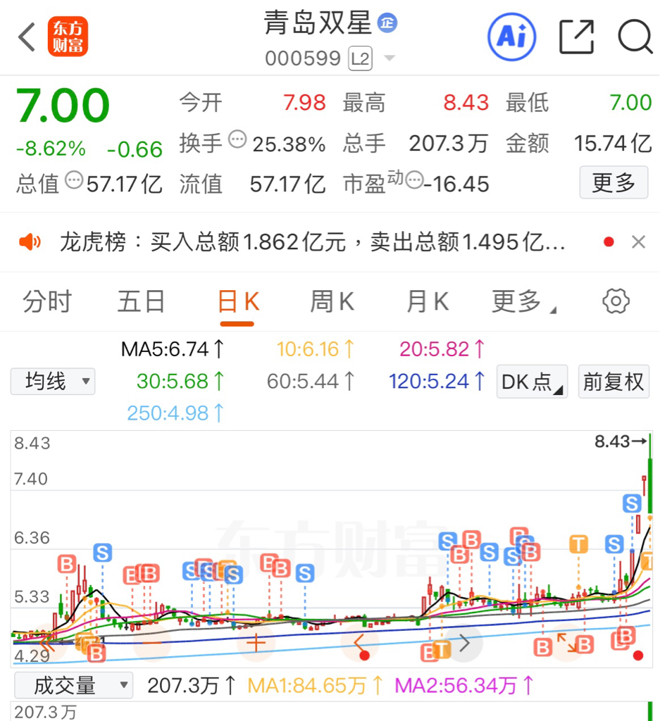 $青岛双星(SZ000599)$ 6/5号515建仓,以为终于守到了,不至于让我错过南京化纤而心痛。这帮13,多么完美的形态,你特么回调就回调嘛。直接砸废了...