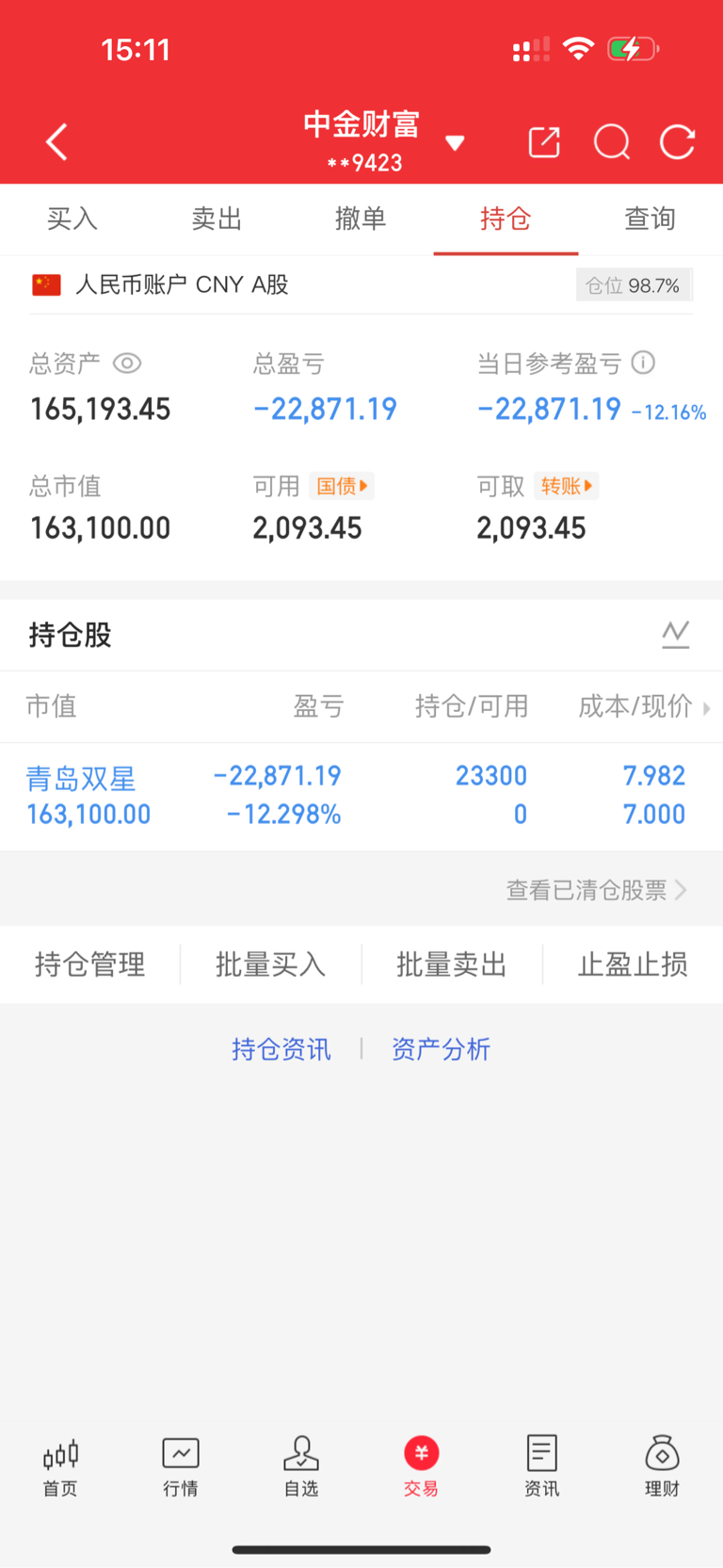 五万实盘的第101天(10月29日),不到五百万,不停更。记录个人成长,验证个人实力,欢迎打假,绝对实盘。目前165193元。今天早盘直接进了$青岛双星(SZ000599)$ ,大亏十二点多。回撤太厉害了。应了那句:成功了就是高瞻远瞩,失败了就是好高骛远。调整好心态,一切平常心看待。#复盘记录# #实盘记录# #投资干货# #强势机会# #炒股日记#
