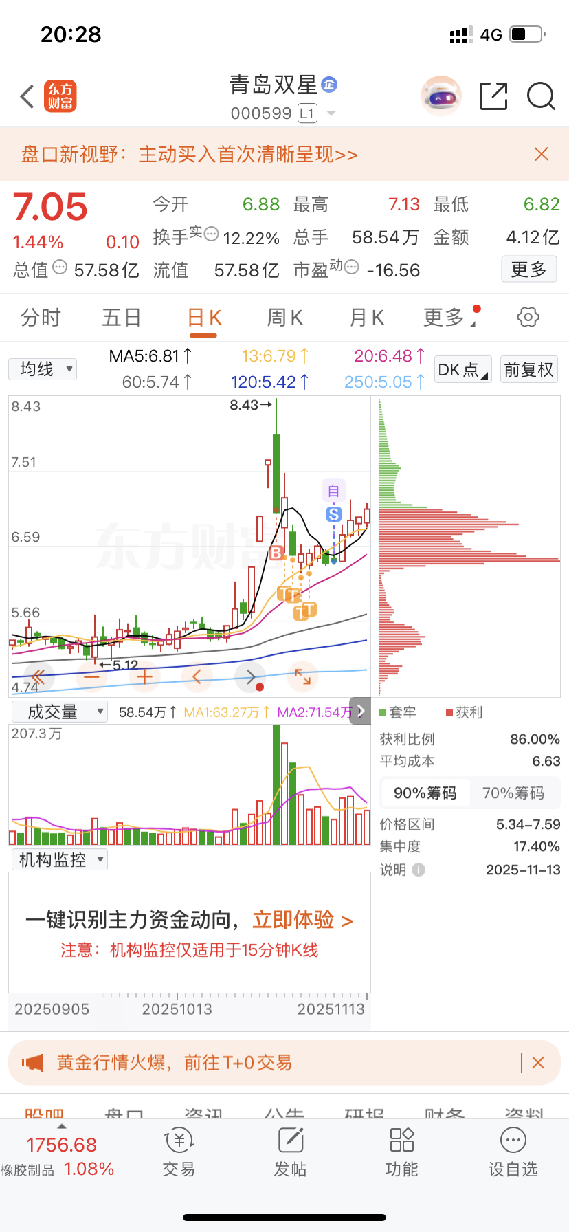 $青岛双星(SZ000599)$ 割肉以后连涨4天,我谢谢你合家土豆..