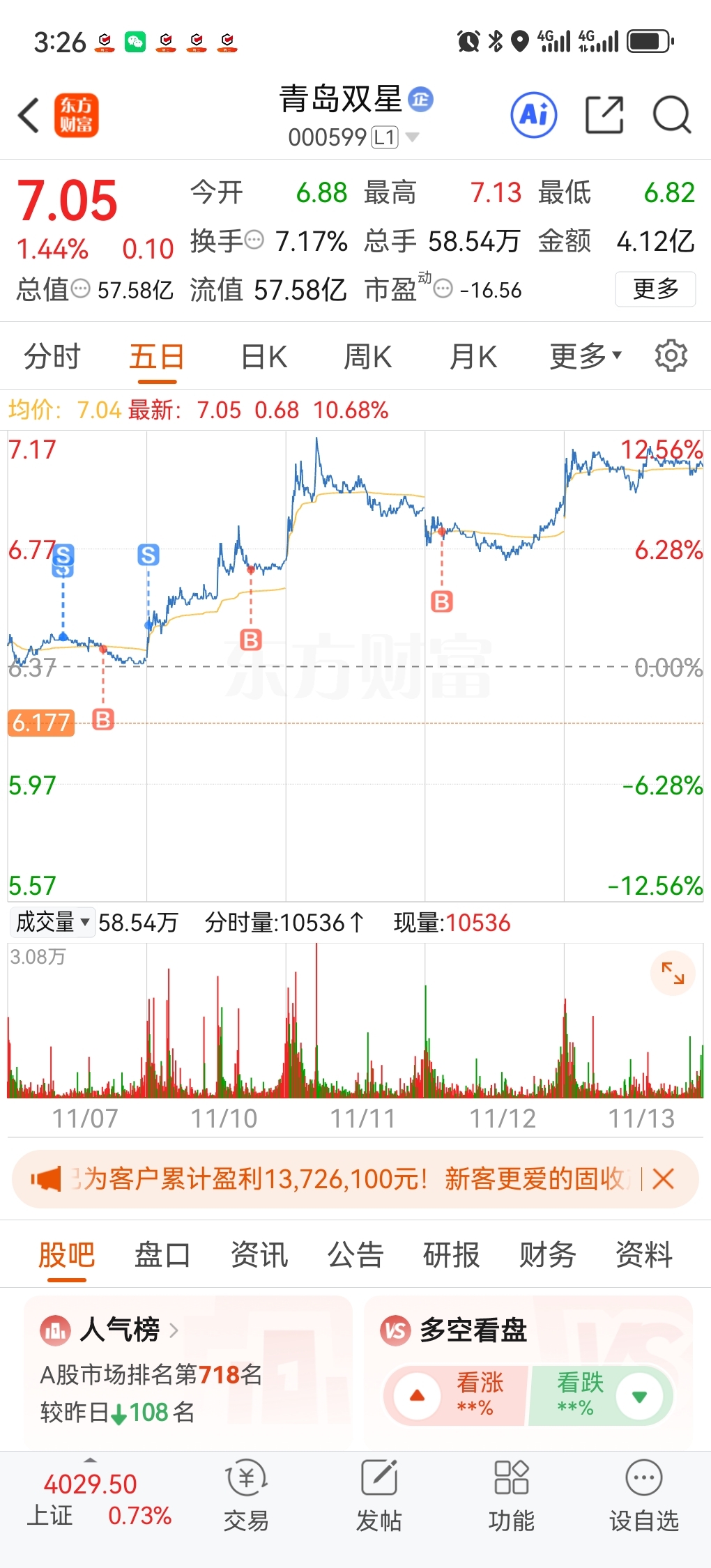 $青岛双星(SZ000599)$ 我这几天t都没t看样子我的感觉挺对