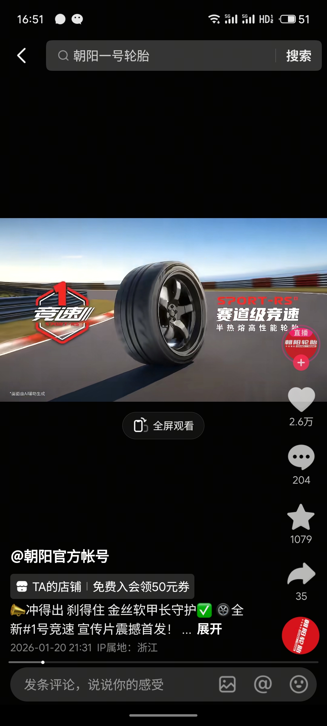 $青岛双星(SZ000599)$ 看看朝阳轮胎的广告,2.5万的点赞,青岛双星根本就不好好经营抖音,抖音极其重要,李亚鹏没有快手号,就一个抖音,看看别人传播力有多强在抖音。
