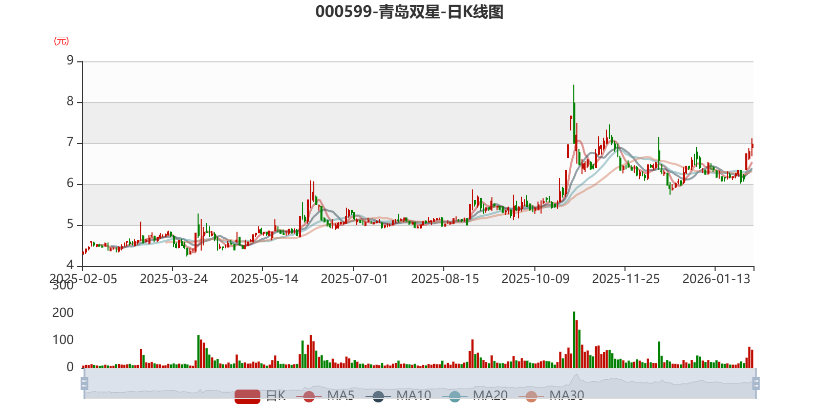中证智能财讯青岛双星(000599)1月30日晚间披露2025年度业绩预告,预计2025年营业收入同比增长5%;归母净利润亏损2.45亿元至3.65亿元,上年同期亏损3.56亿元;扣非净利润亏损3亿元至4.2亿元,上年同期亏损3.68亿元;基本每股收益-0.3元/股至-0.45元/股。以最新收盘价计算,市净率(LF)约4.33倍,市销率(TTM)约1.26倍。