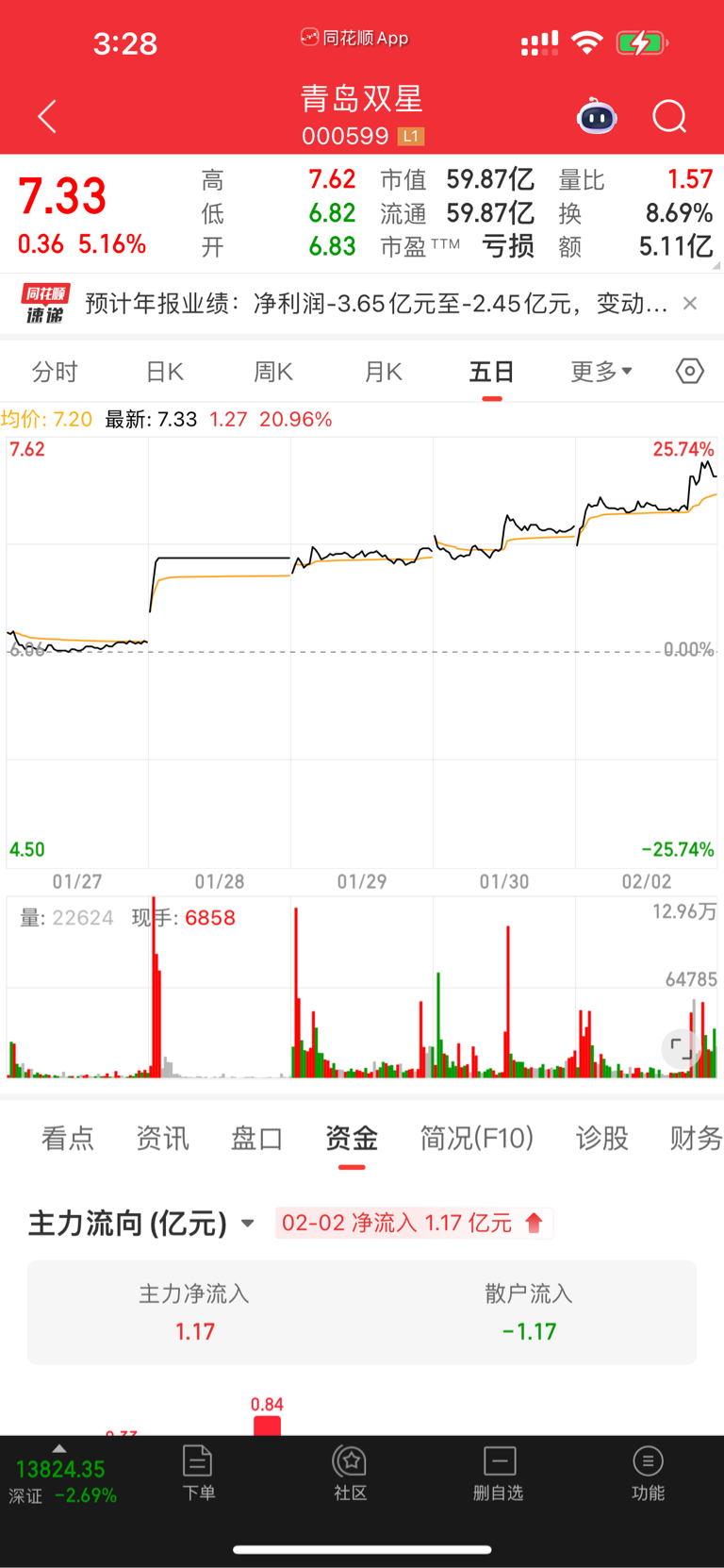 $青岛双星(SZ000599)$ 这五日线明天在拉高堪称完美 成交量也牛皮。