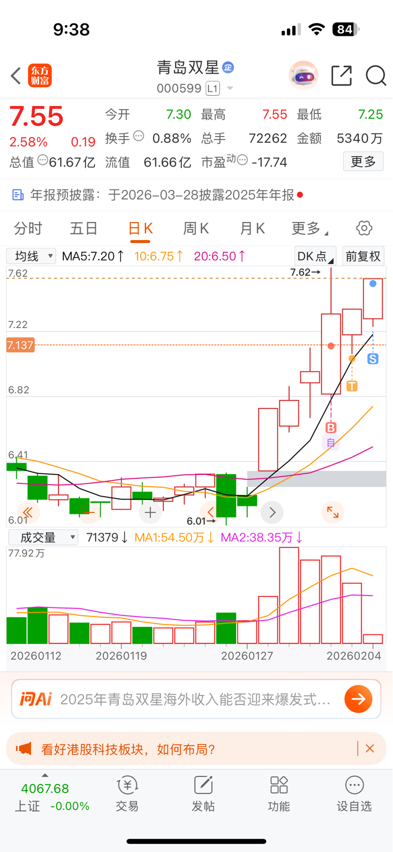 $青岛双星(SZ000599)$ 哎呦,卖飞了