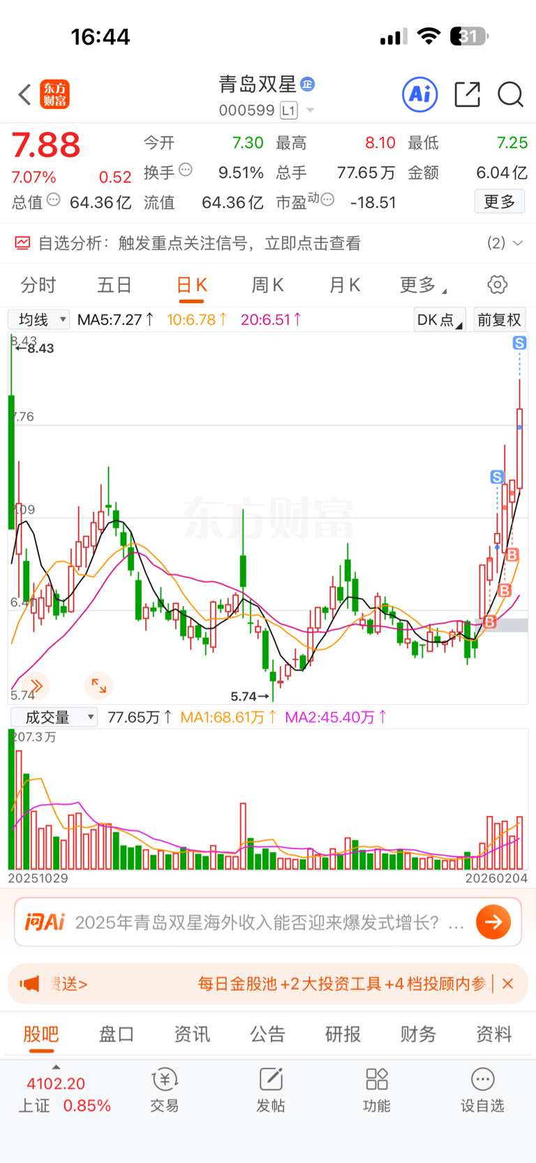 $青岛双星(SZ000599)$  今天五个点清仓了,明天低开能不能接回来