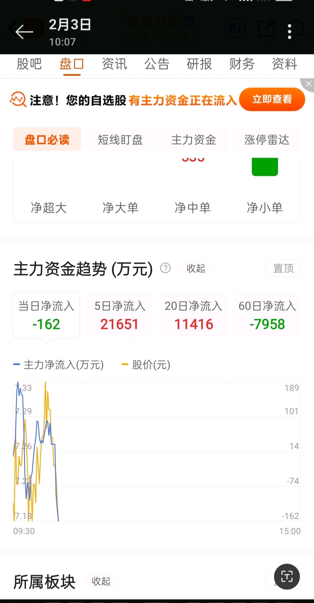 $青岛双星(SZ000599)$ 2月3号看的两亿多主力还在,目前5日净流入才七千多万,主力偷偷跑了