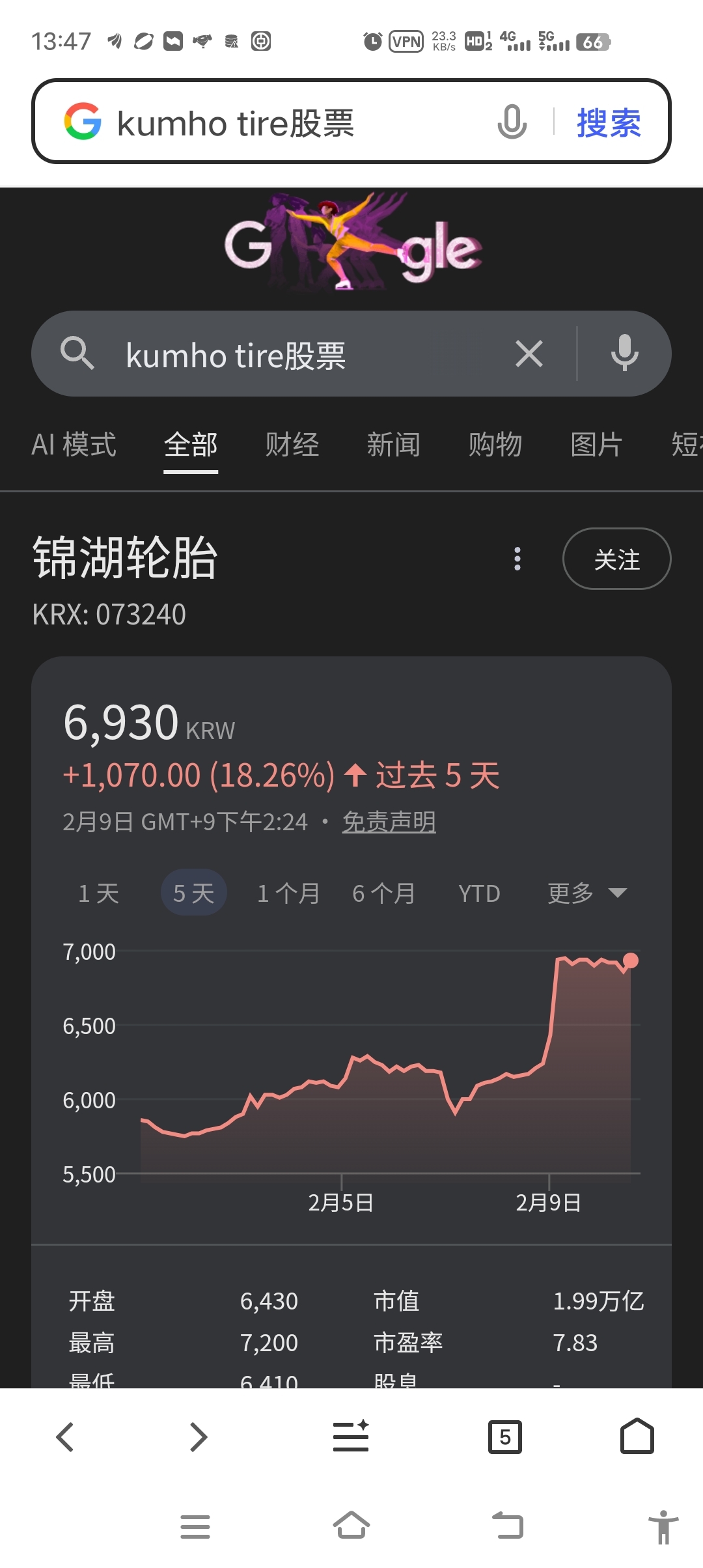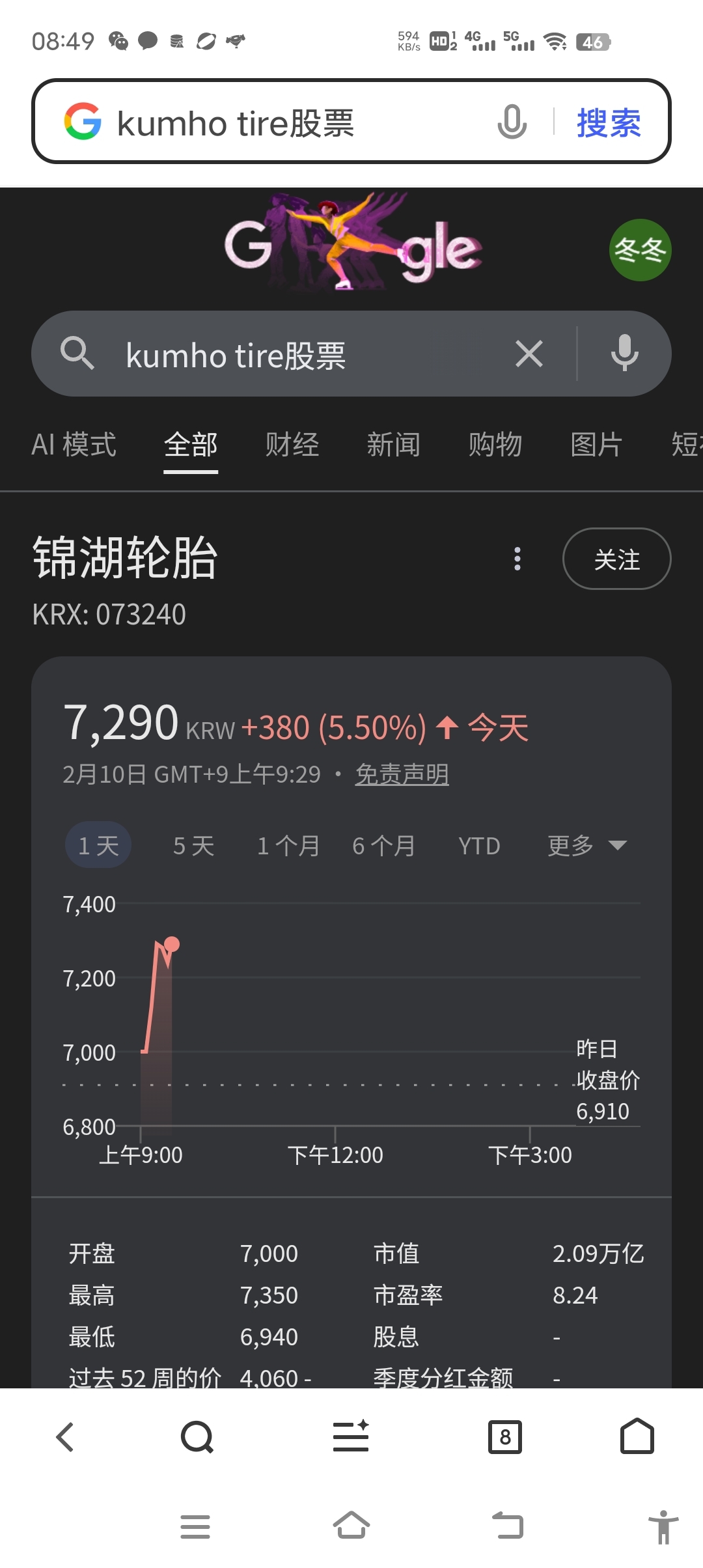 昨天百分之十,今天百分之五,锦湖轮胎涨疯了。