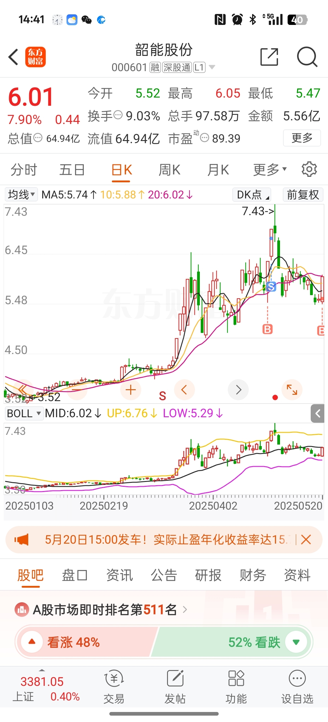 $韶能股份(SZ000601)$ 谢谢主力 两次了