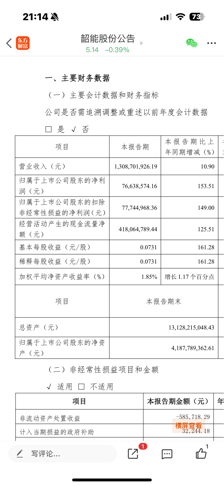 $韶能股份(SZ000601)$ 净利润,扣非净利润,现金流量净额,比上年同期大幅度增加!