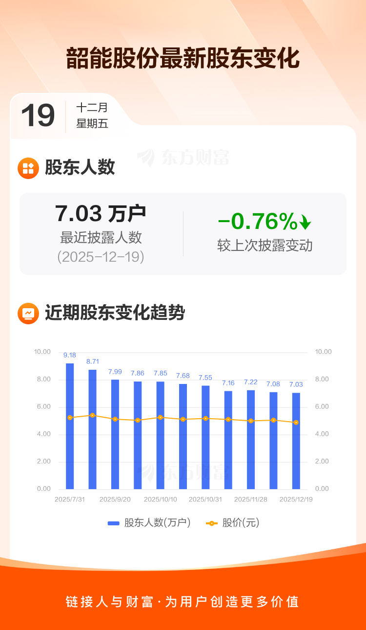 韶能股份:截至12月19日最新股东户数7.03万户,较上期减少0.76%