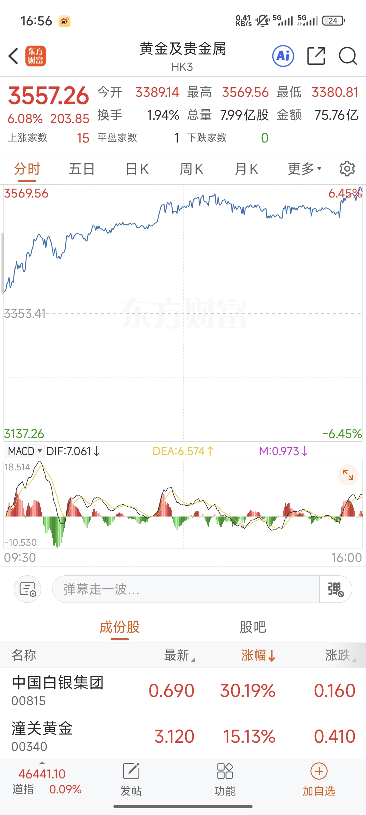 $盛达资源(SZ000603)$ 港股黄金白银板块,领涨