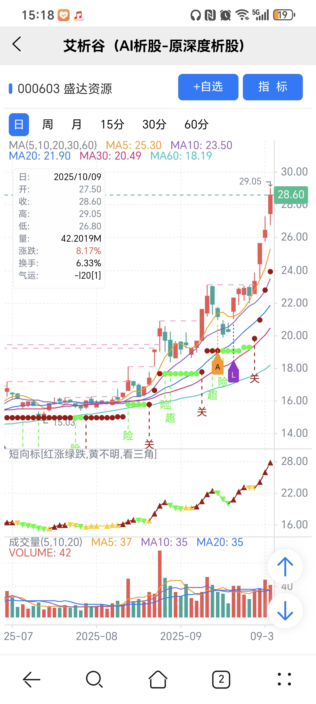 红绿小圆点是艾析谷的量化指标-超级短趋线,是趋势跟踪+突破类的量化指标,完全免费。