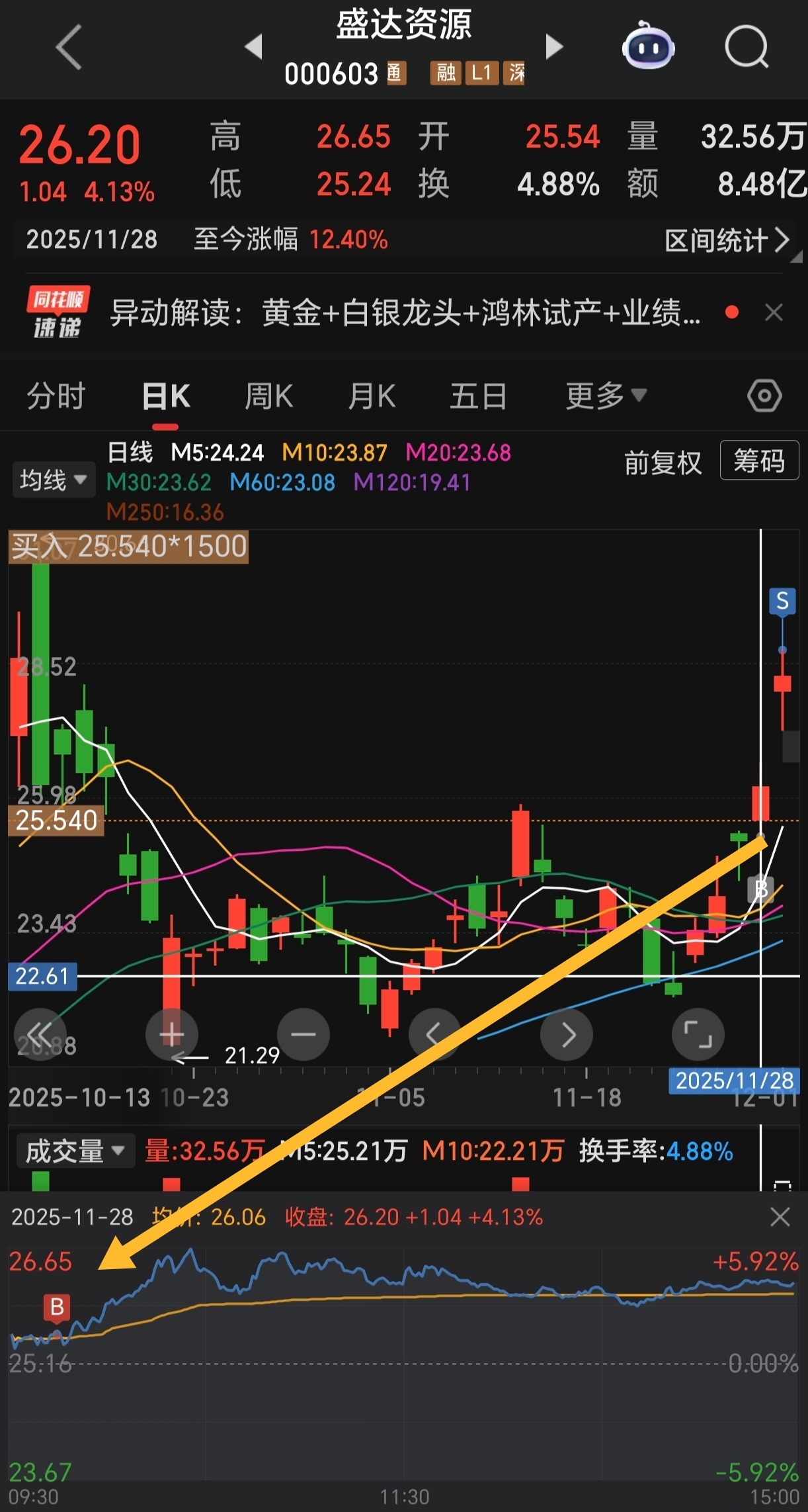 $盛达资源(SZ000603)$ 卖了,太忙,没空看盘了
