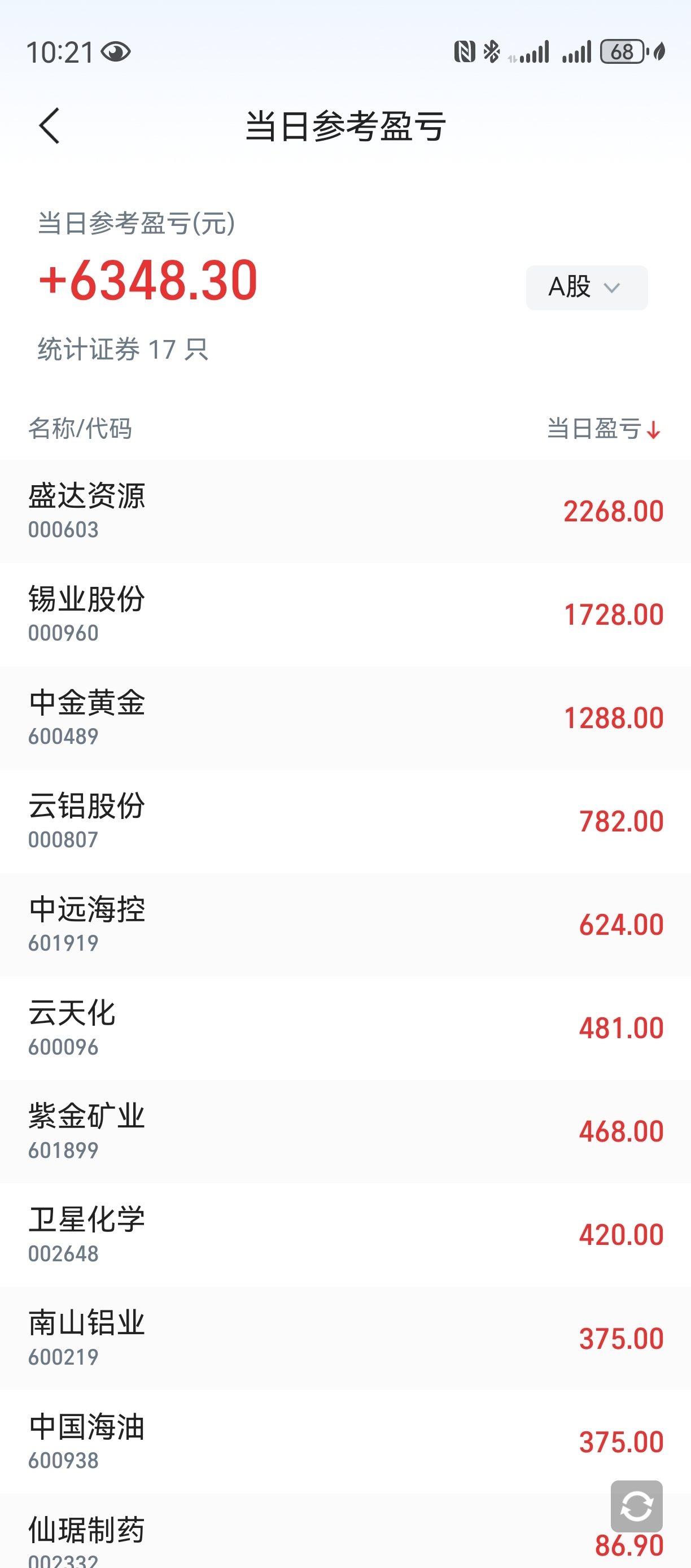 $盛达资源(SZ000603)$ 唉 受到电力板块拖累今天全靠有色贵金属拉了