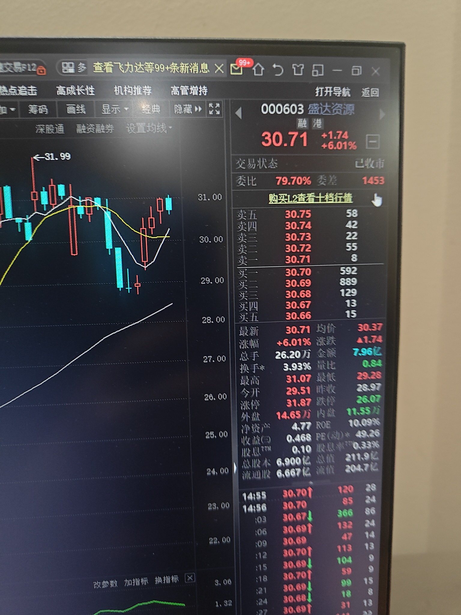 $盛达资源(SZ000603)$ 今天在头条学的这个图。自己设置的分钟。出现向上的金叉应该是上涨的。如果出现向下的死叉或跌破下边这个灰线,就是下跌趋势。没人教,都是自己在网上搜的。不知道对不对,大佬们有懂的说一下。