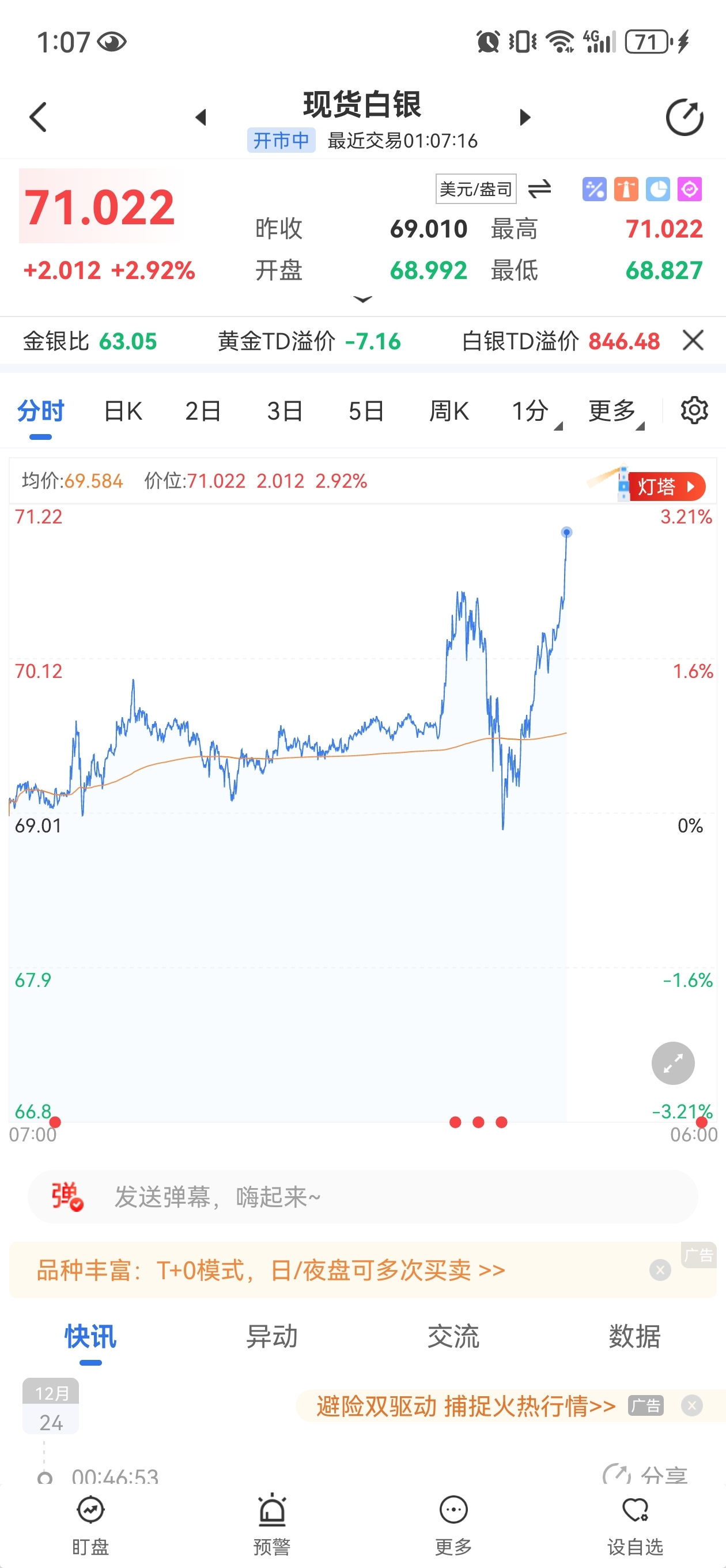现货破71美金了伙计们