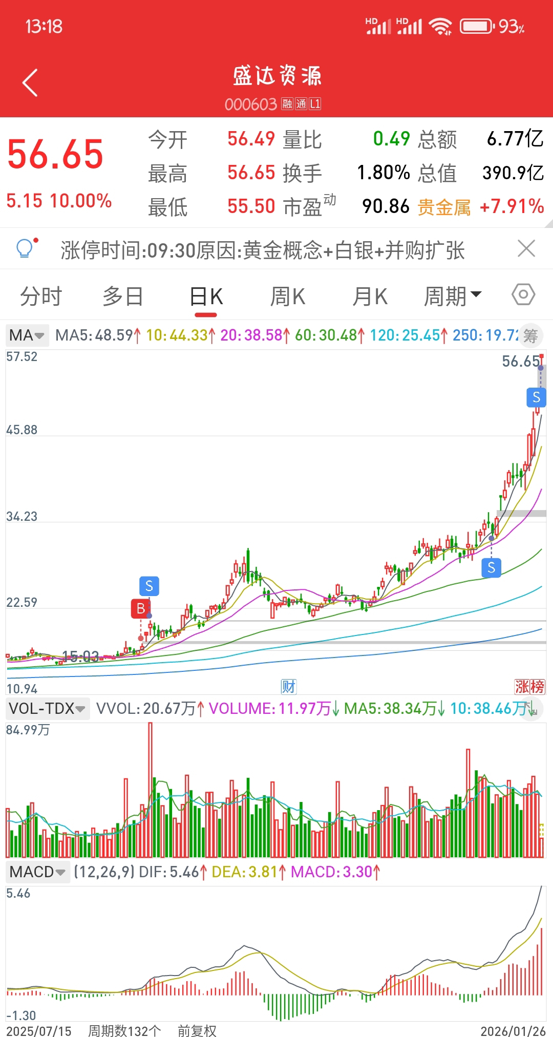 $盛达资源(SZ000603)$ 2026年1月26日,盛达中长线之战,拿下!继续分批止盈,踏空无悔。只做笔记,不做推荐,操盘有风险,勿跟。