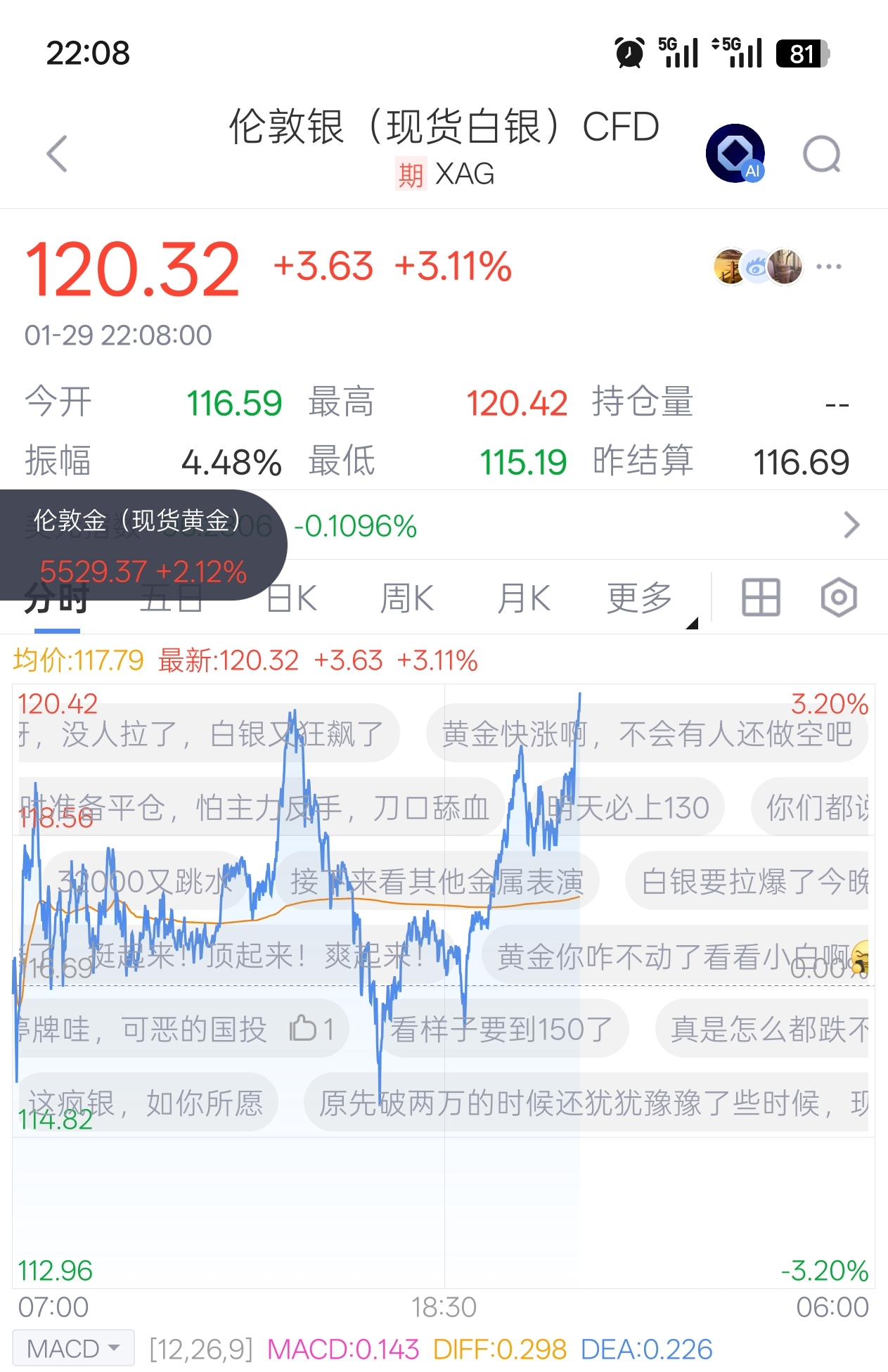 白银还在暴涨,我今天一直没跑,兄弟们拿住自己的票,明天反包上去,虽然主力有点勾,