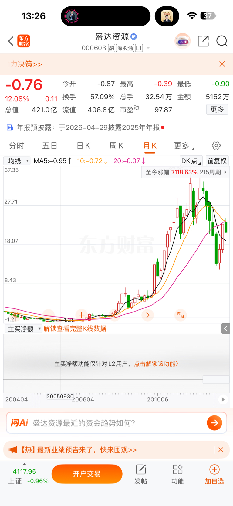 $盛达资源(SZ000603)$ 05年他股价为什么负的