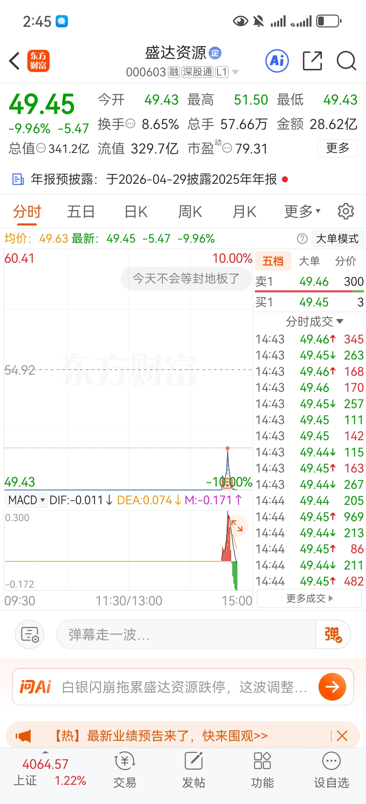 $盛达资源(SZ000603)$ 气死了