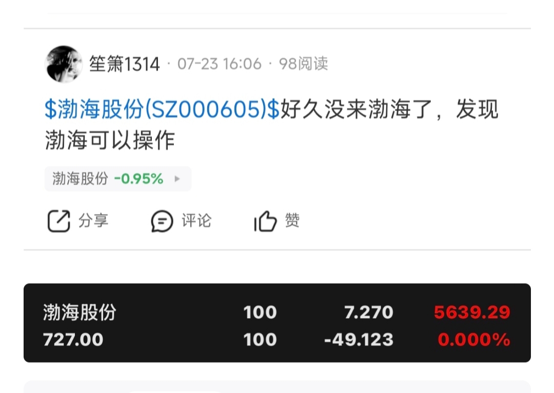 $渤海股份(SZ000605)$ 这可怜的东西3个多月才赚了这么点,都不够它老,蔢出去卖一个月的。