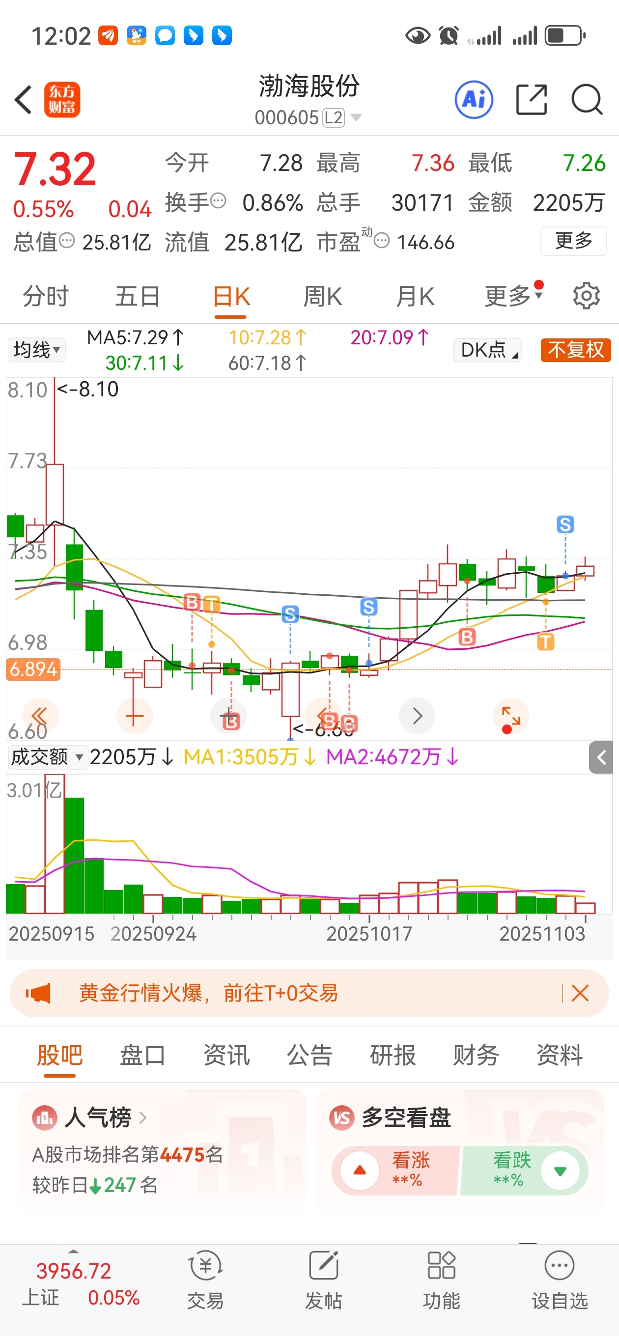 $渤海股份(SZ000605)$ 跌下来,剩余半仓继续。