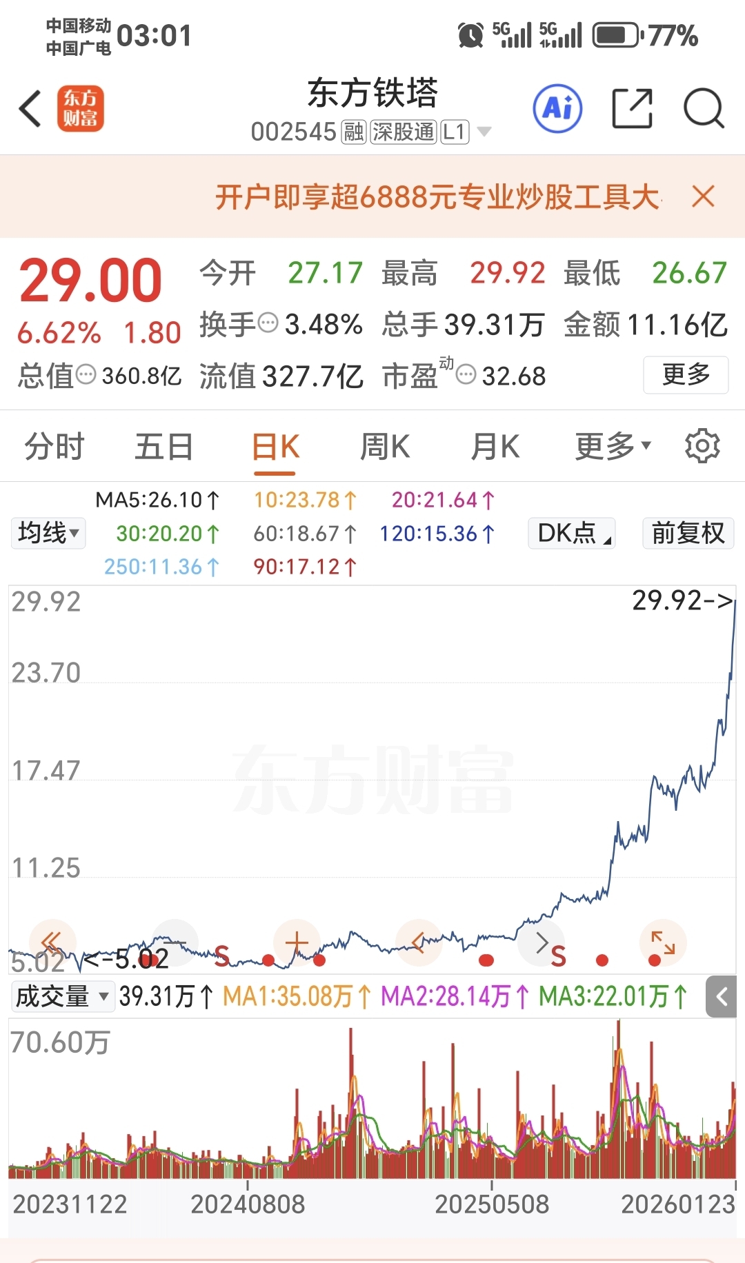 你啥时候能像东方铁塔这样,从5块多涨到29