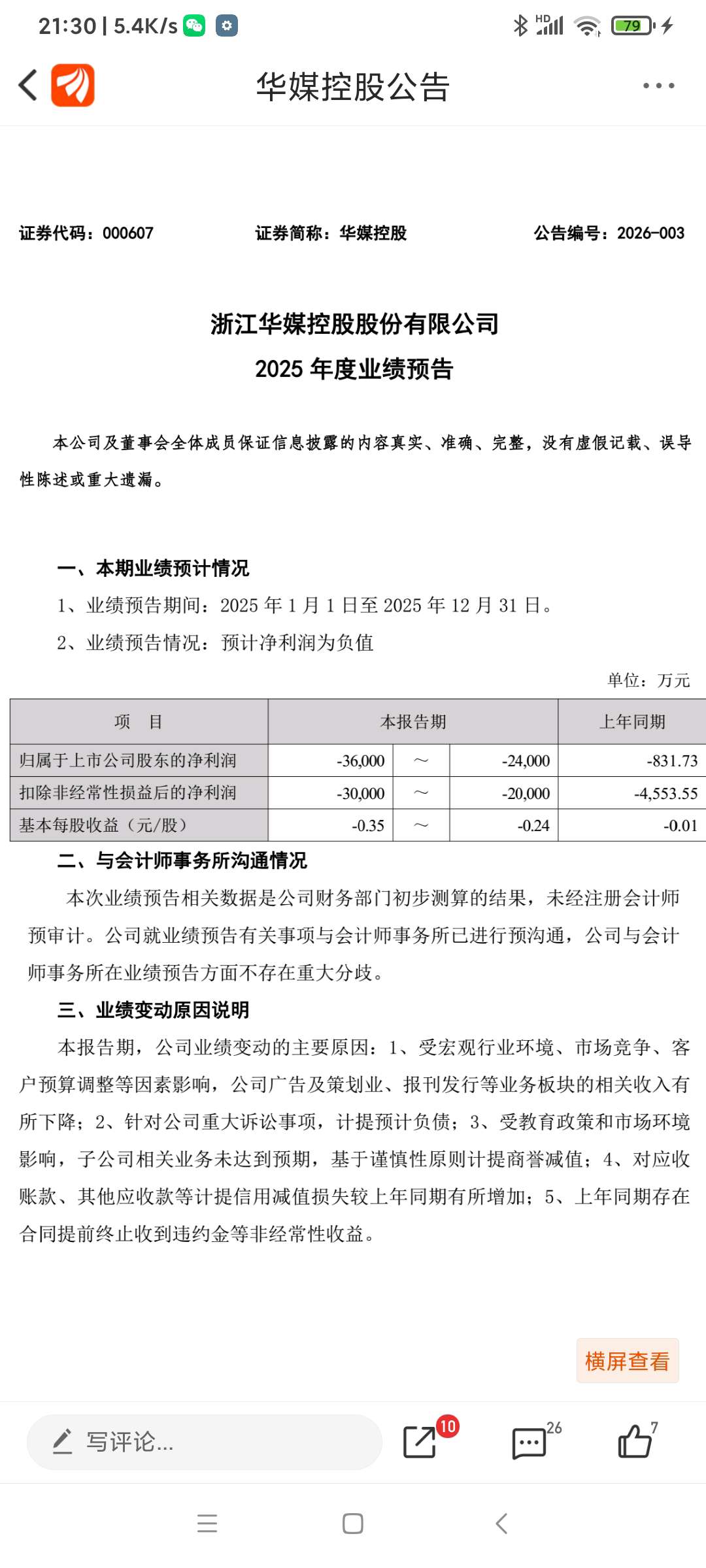 华媒控股,周五晚上业绩预亏最多3.6亿元。