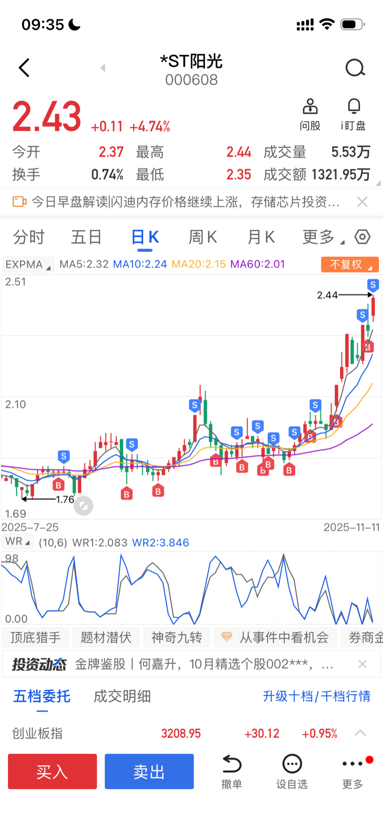 $*ST阳光(SZ000608)$ 明天再来