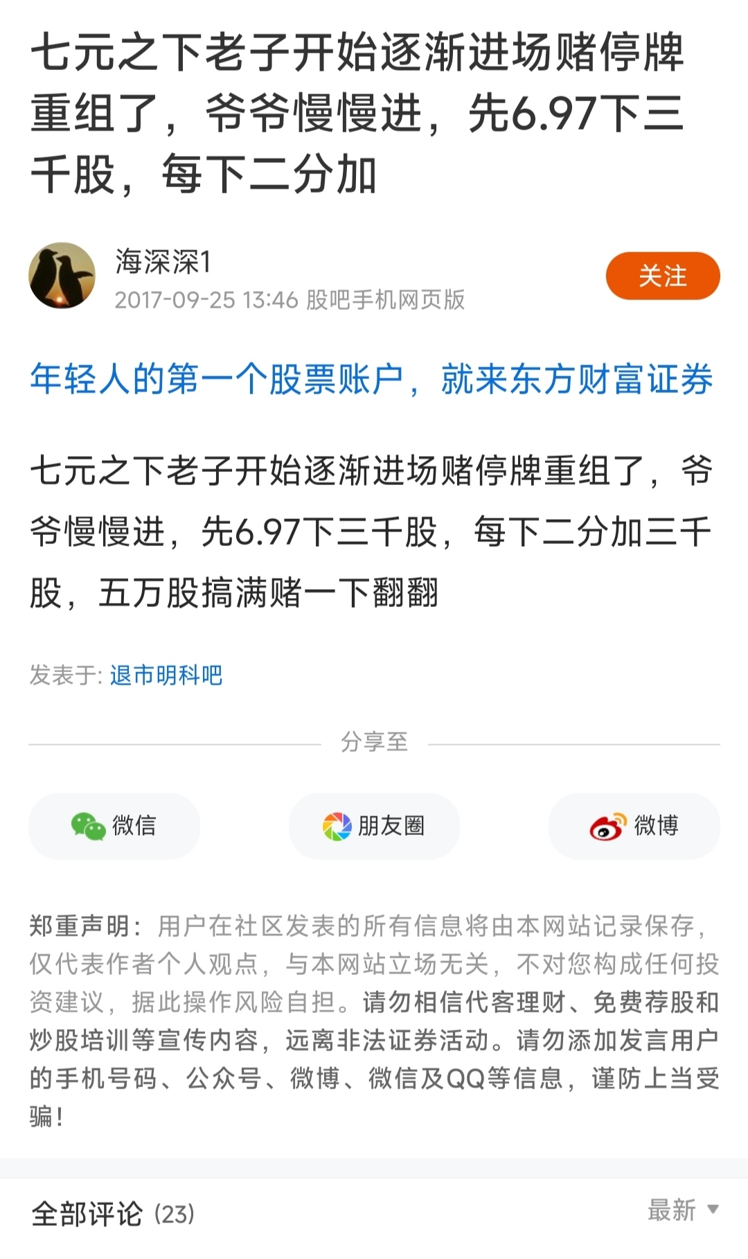郑重声明:用户在财富号/股吧/博客等社区发表的所有信息(包括但不限于文字、视频、音频、数据及图表)仅代表个人观点,与本网站立场无关,不对您构成任何投资建议,据此操作风险自担。请勿相信代客理财、免费荐股和炒股培训等宣传内容,远离非法证券活动。请勿添加发言用户的手机号码、公众号、微博、微信及QQ等信息,谨防上当受骗!