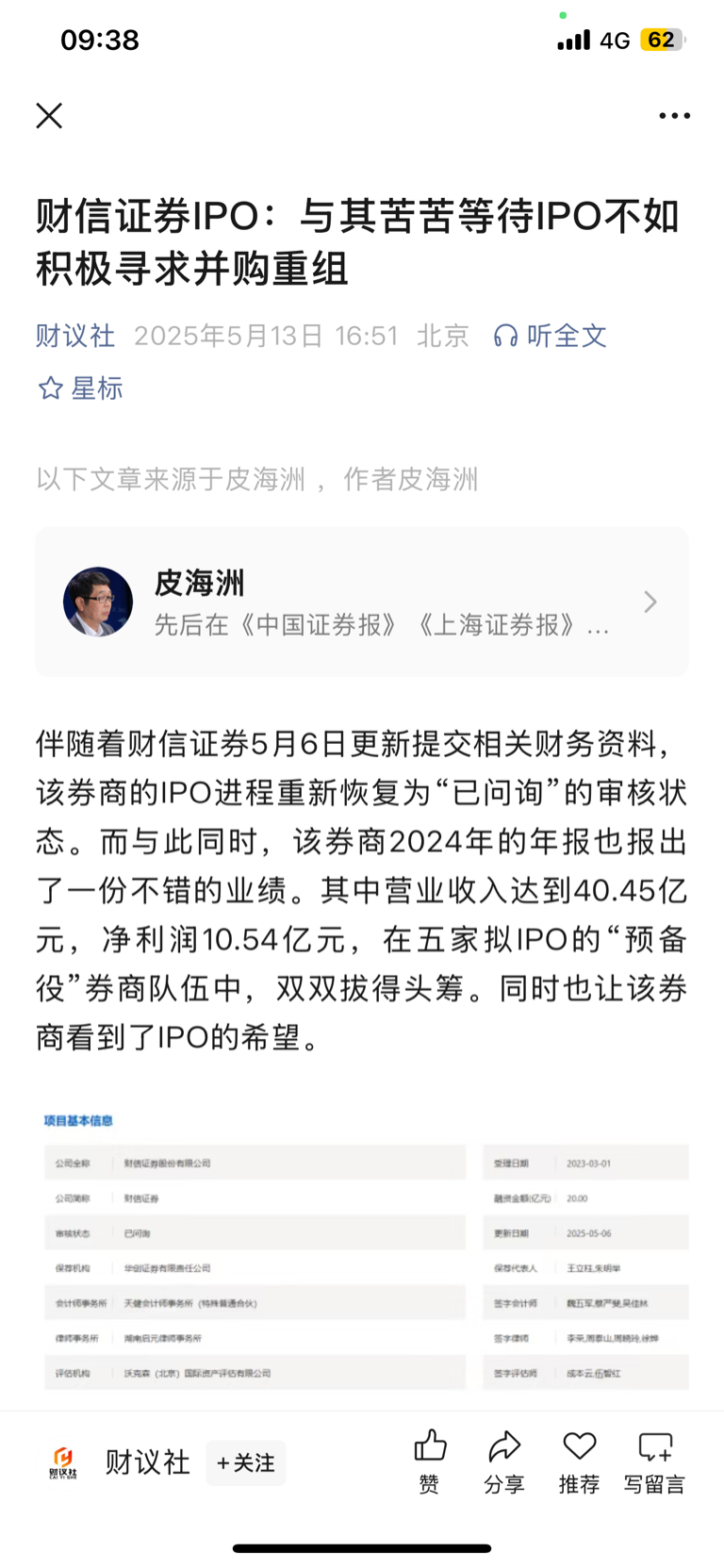 $*ST阳光(SZ000608)$ 财信证券要重组上市