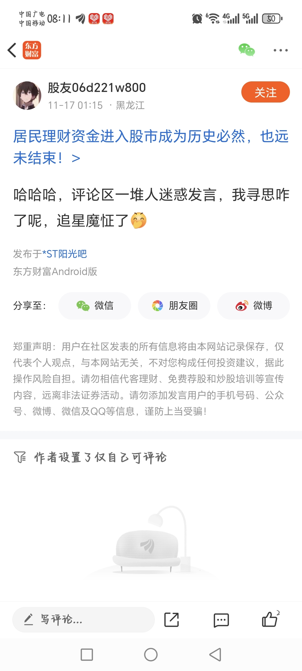 温馨提示: 1.根据《证券法》规定,禁止编造、传播虚假信息或者误导性信息,扰乱证券市场;2.用户在本社区发表的所有资料、言论等仅代表个人观点,与本网站立场无关,不对您构成任何投资建议。用户应基于自己的独立判断,自行决定证券投资并承担相应风险。《东方财富社区管理规定》