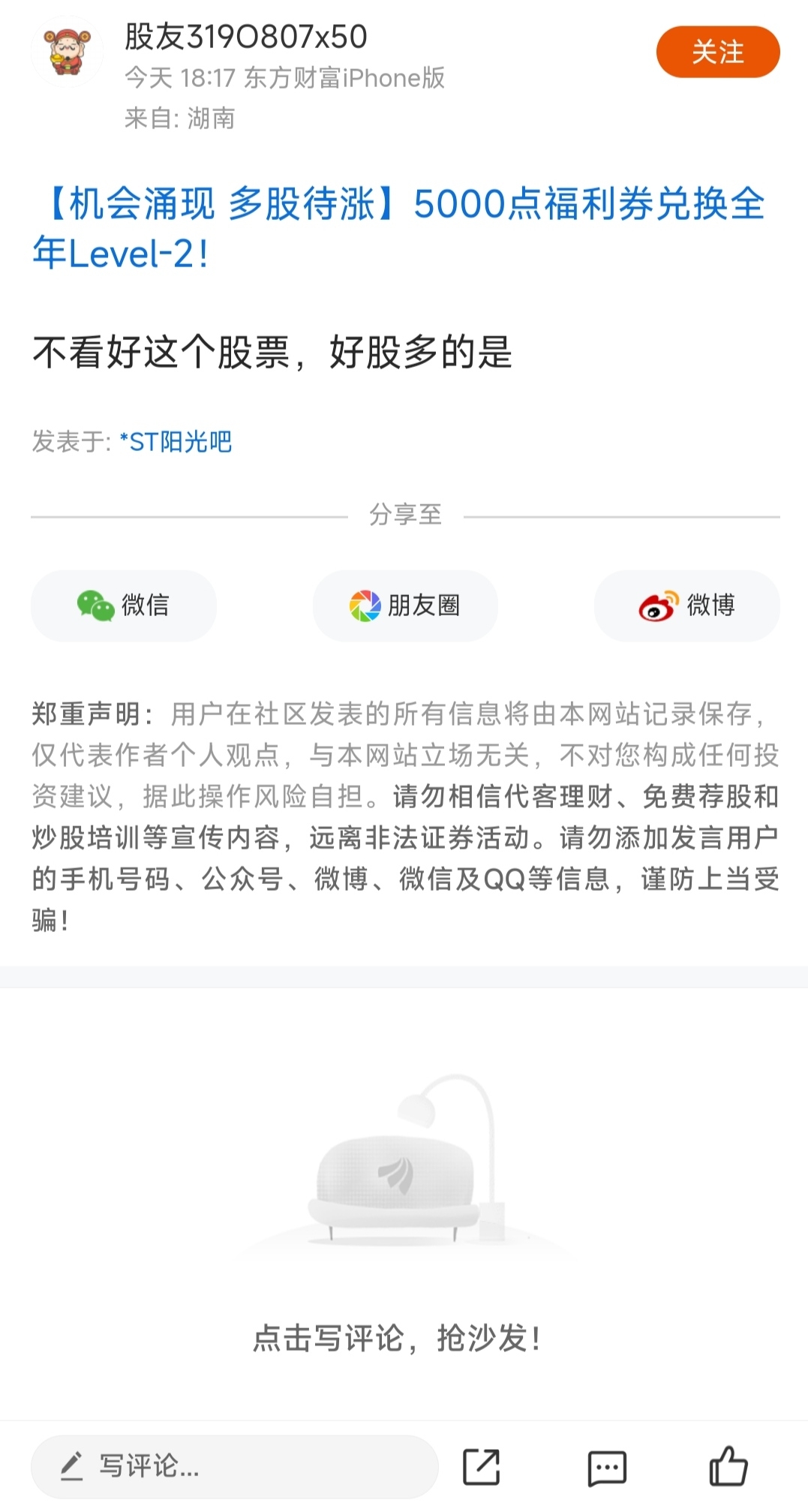 郑重声明:用户在财富号/股吧/博客等社区发表的所有信息(包括但不限于文字、视频、音频、数据及图表)仅代表个人观点,与本网站立场无关,不对您构成任何投资建议,据此操作风险自担。请勿相信代客理财、免费荐股和炒股培训等宣传内容,远离非法证券活动。请勿添加发言用户的手机号码、公众号、微博、微信及QQ等信息,谨防上当受骗!