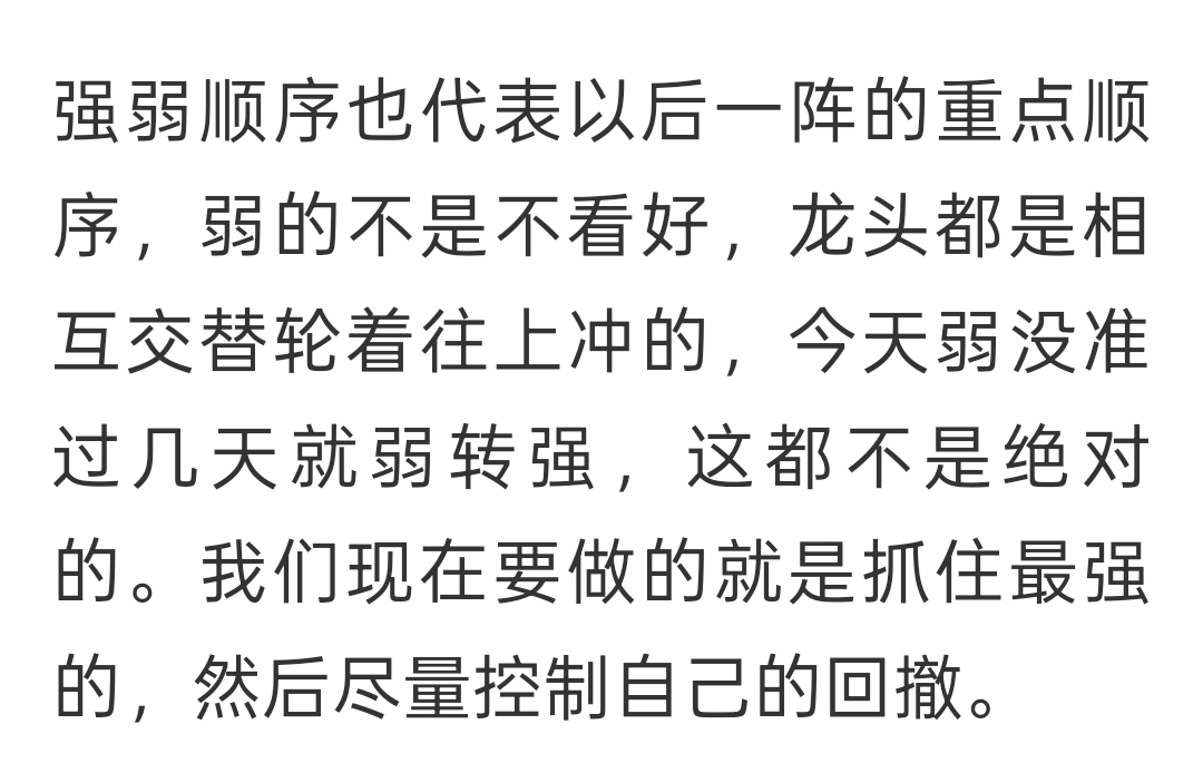 公开场合没法说操作的,会严重影响盘面,我只能建议大家不管买什么,都以安全性放第一位,收益性放第二位,之前正平,中迪,东易一直大涨,但是我依然推荐的是沐邦,因为我知道,我推荐沐邦大家不会套住,位置低,预重整刚开始,这是对大家的负责,那个时候沐邦只是我三四仓位,我不需要大家来抬轿我重仓,我只是希望都能稳定赚钱。