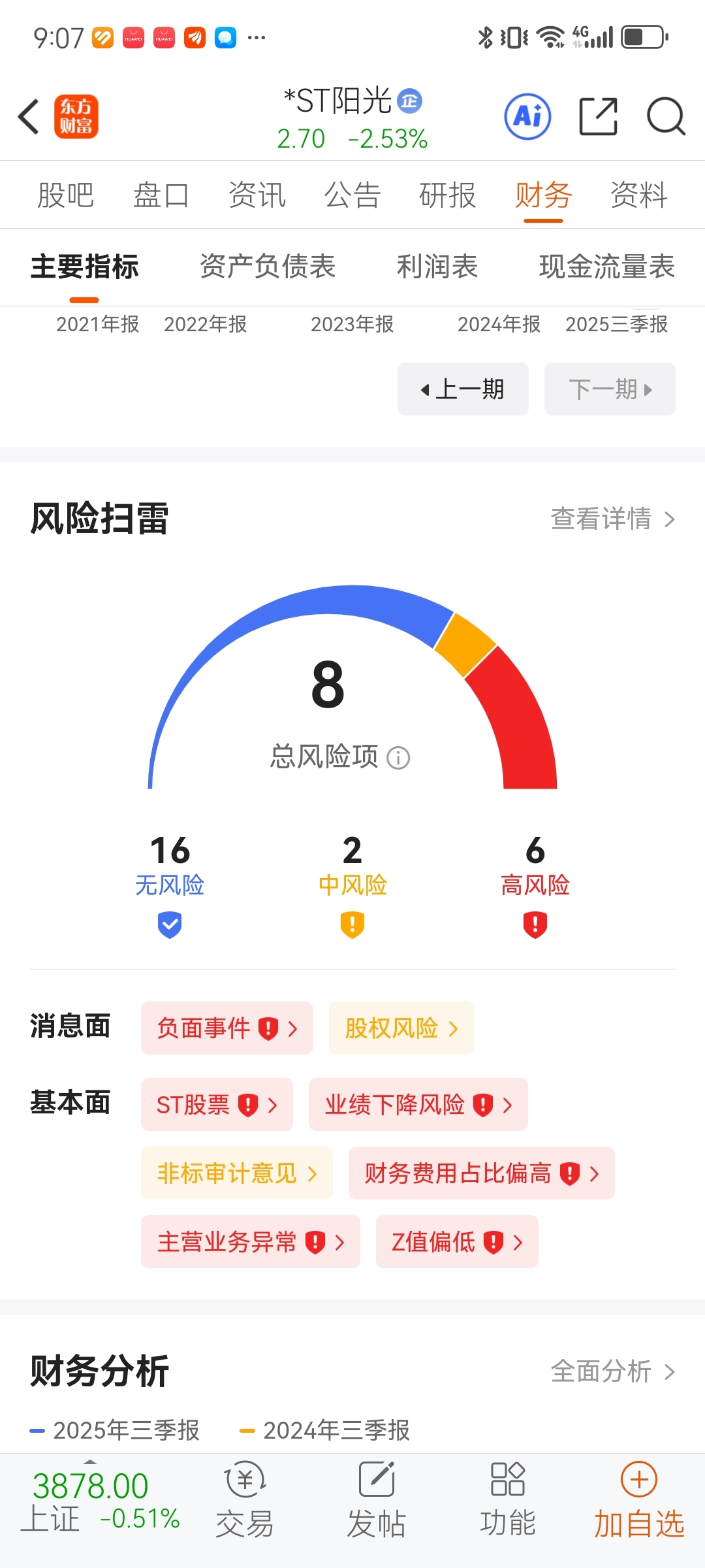 $*ST阳光(SZ000608)$ 这股票谁敢买,高风险,负面事件,赶紧抛吧。