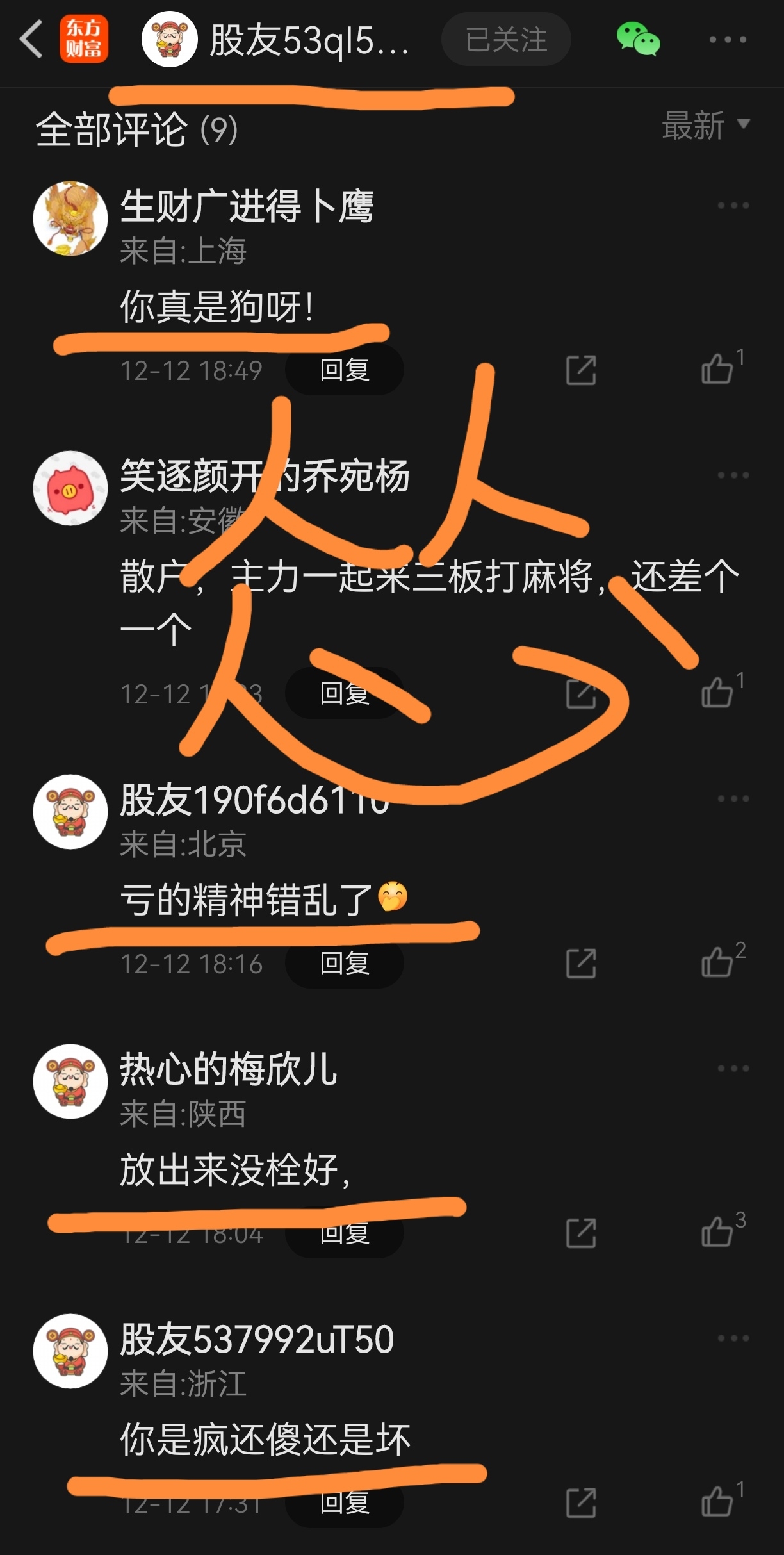 最后,发现,他比我认知的更那啥,总结五个字:坏、蠢、菜、怂、笨(正常的五个形容词的字,发出时如果不是五个字可能就有被系统屏蔽的)。用图片简单展示下冰山一角: