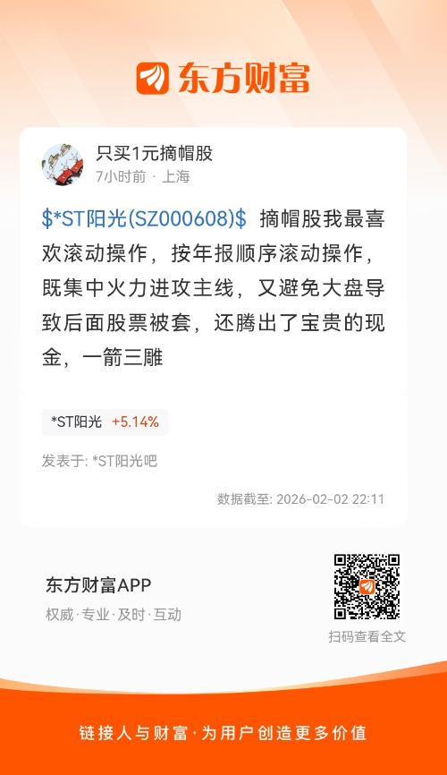 $*ST阳光(SZ000608)$ 摘帽股我最喜欢滚动操作,按年报顺序滚动操作,既集中火力进攻主线,又避免大盘导致后面股票被套,还腾出了宝贵的现金,一箭三雕