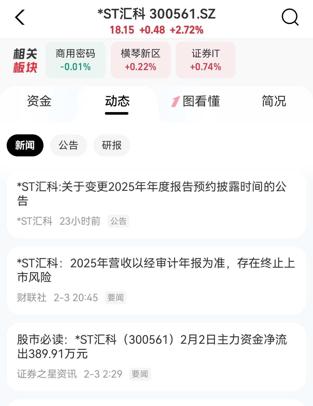$*ST阳光(SZ000608)$ $*ST花王(SH603007)$ $*ST汇科(SZ300561)$ 汇科虽然延期,不是4月底风险不大,公司既然去年12月底花1.2亿理财,就有把握营收过关,反而明天深水下是机会,牛哥凭着盘感再次逃过一劫。逃顶技术哪家强,还看牛哥当自强!