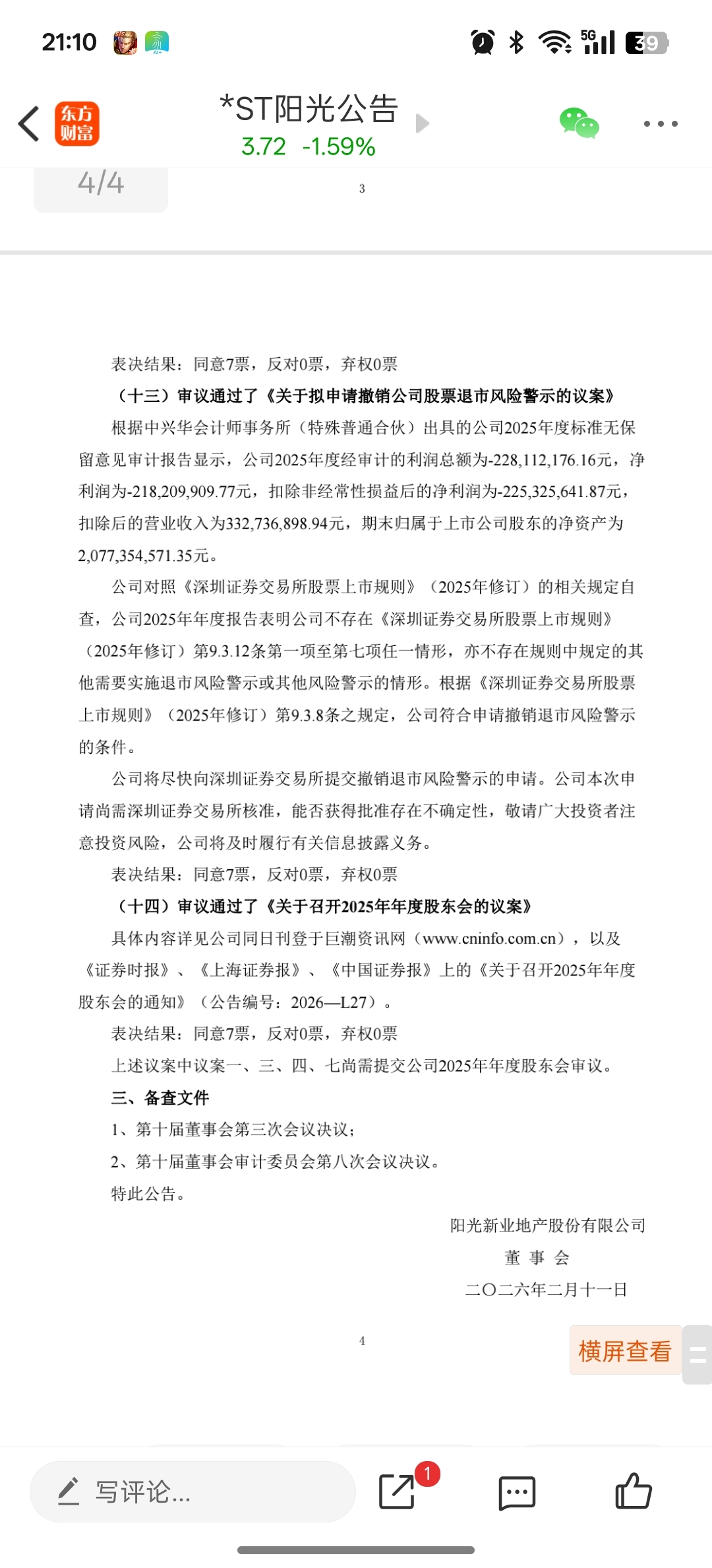 $*ST阳光(SZ000608)$ 恭喜荣获2026年度摘帽第一股