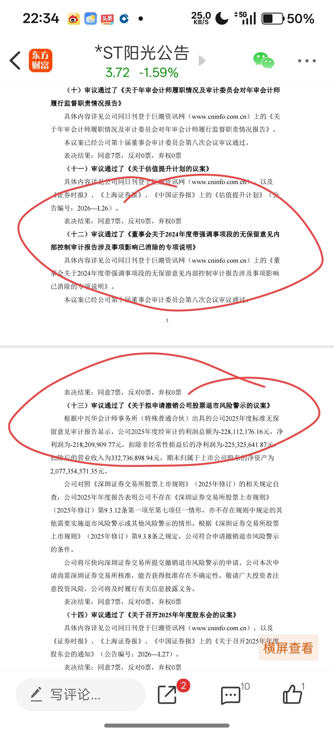 $*ST阳光(SZ000608)$ 阳光顺利通过年报大考,审议申请摘帽!