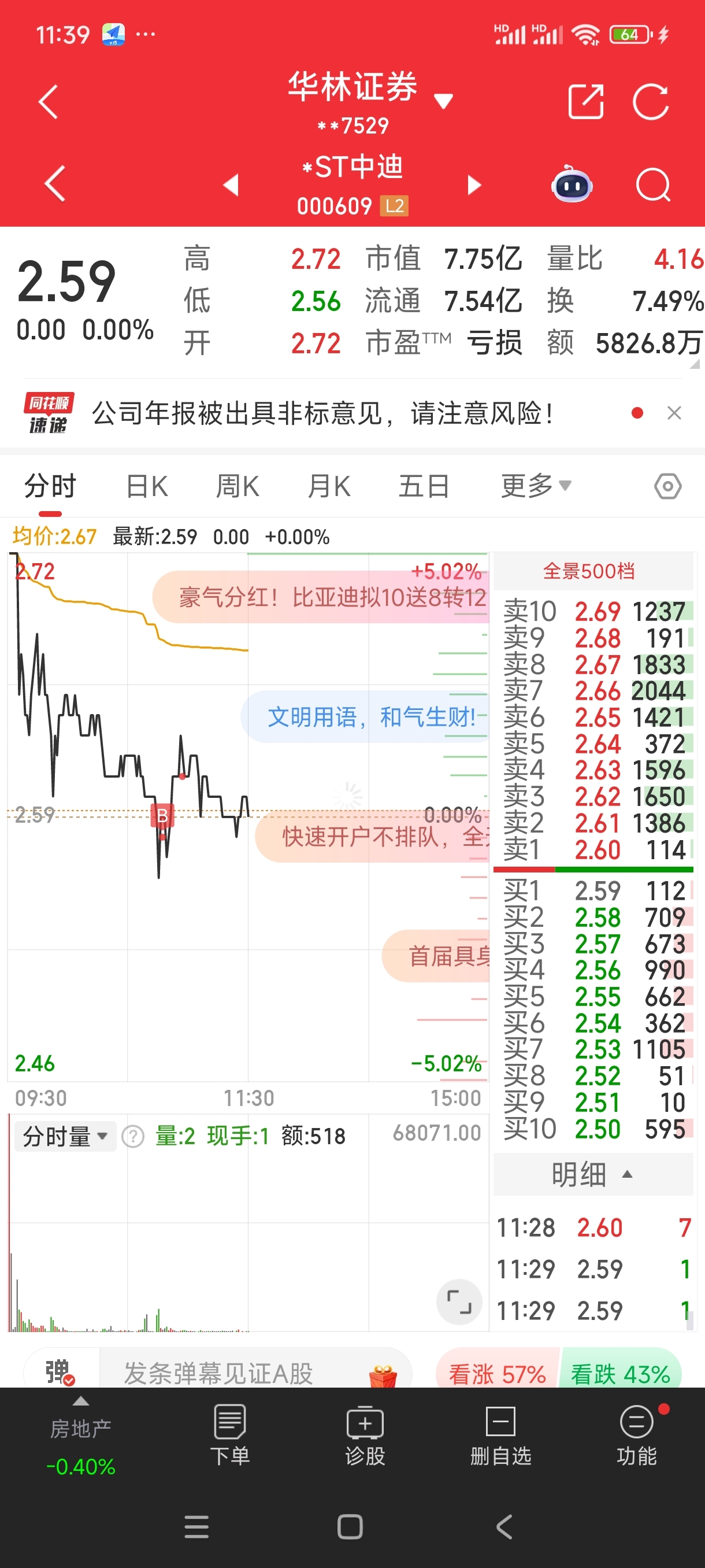 $*ST中迪(SZ000609)$ 主力这么没格局?既然给机会,重新建仓,干!