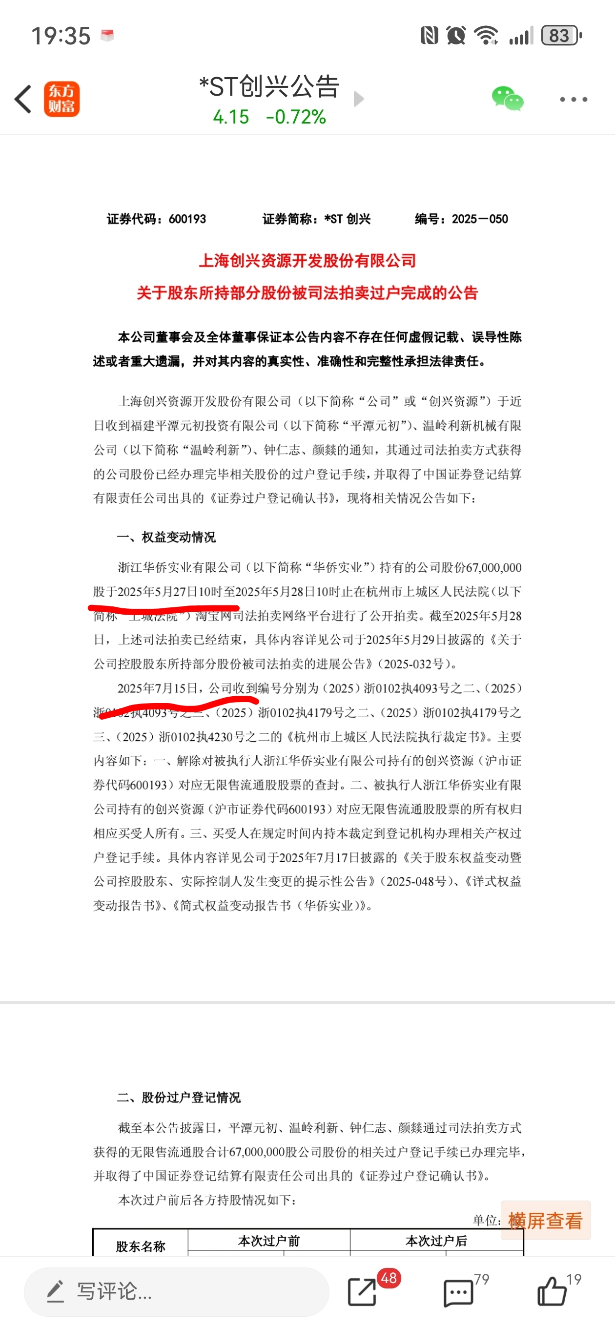 $ST中迪(SZ000609)$ 为什么创兴拍卖一个多月才完成过户?