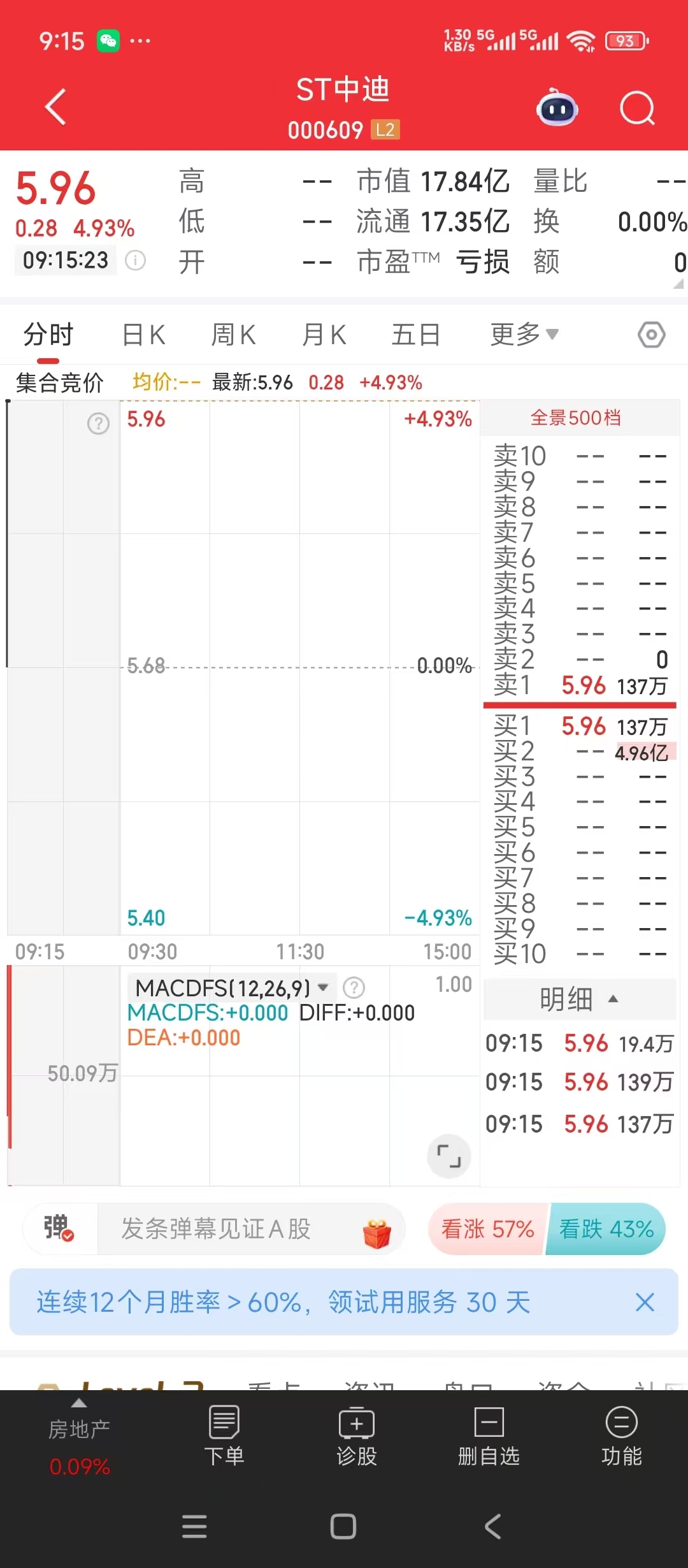 $ST中迪(SZ000609)$ $)$ 早上集合竞价4.96亿