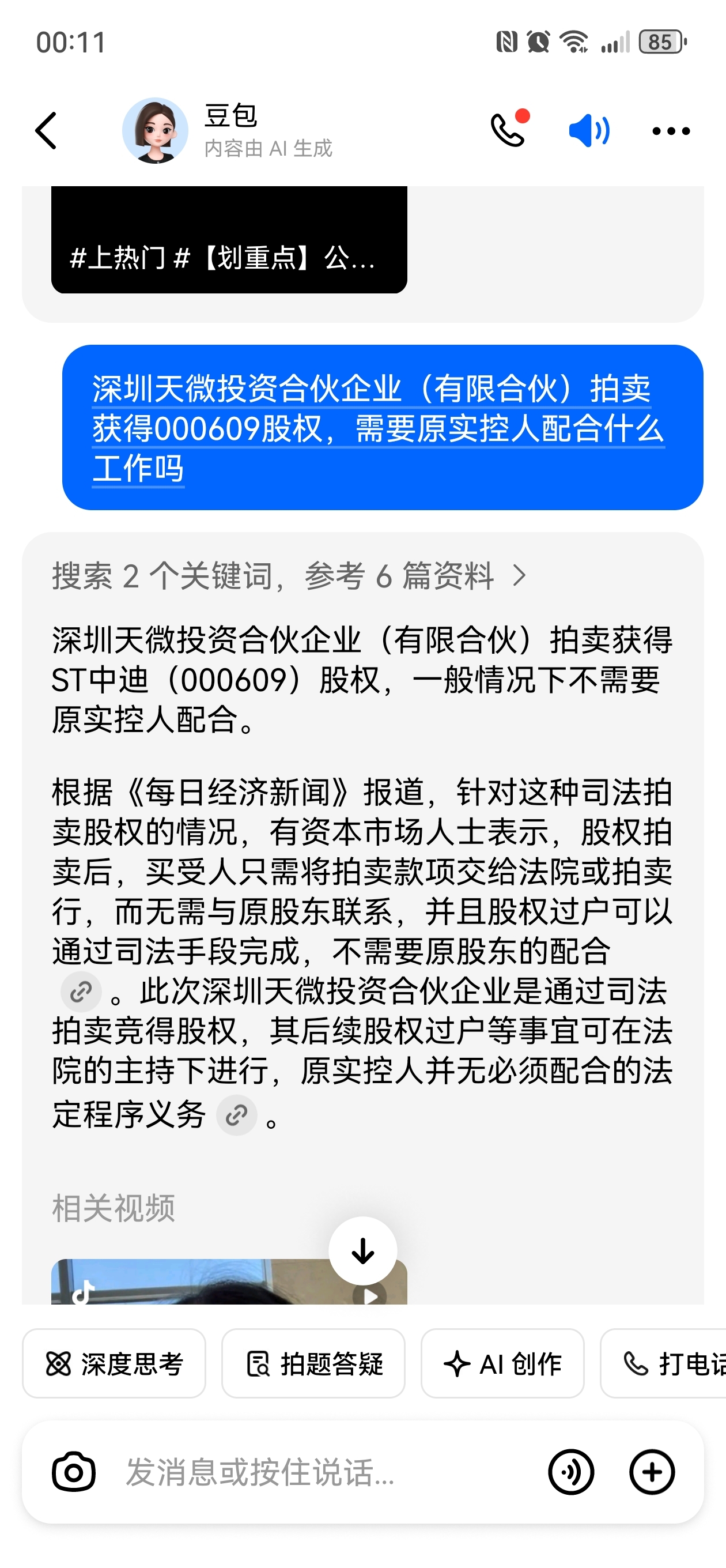 $ST中迪(SZ000609)$ 深圳天微投资合伙企业(有限合伙)交了尾款,中迪已经跟吴老太没有半毛钱关系了