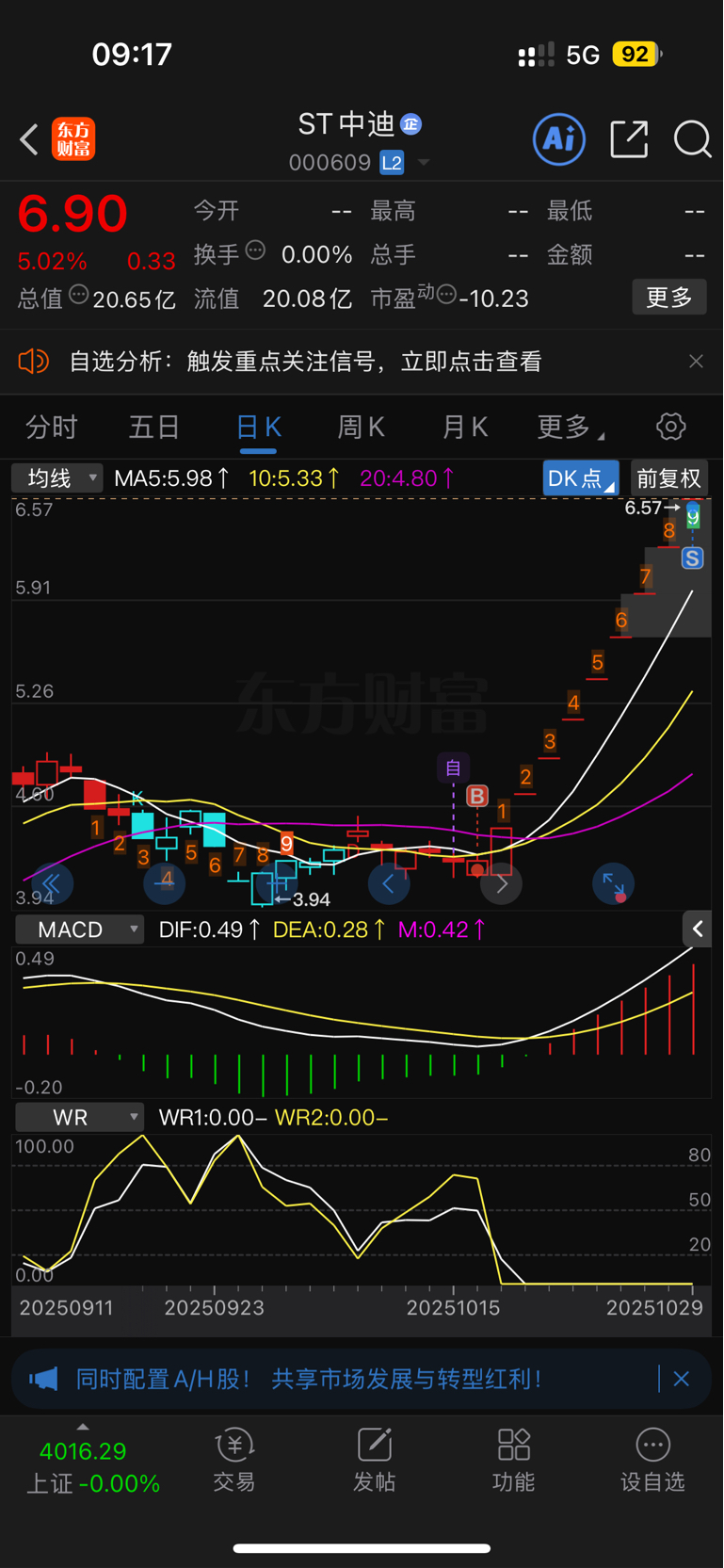 $ST中迪(SZ000609)$ 吃了十连板