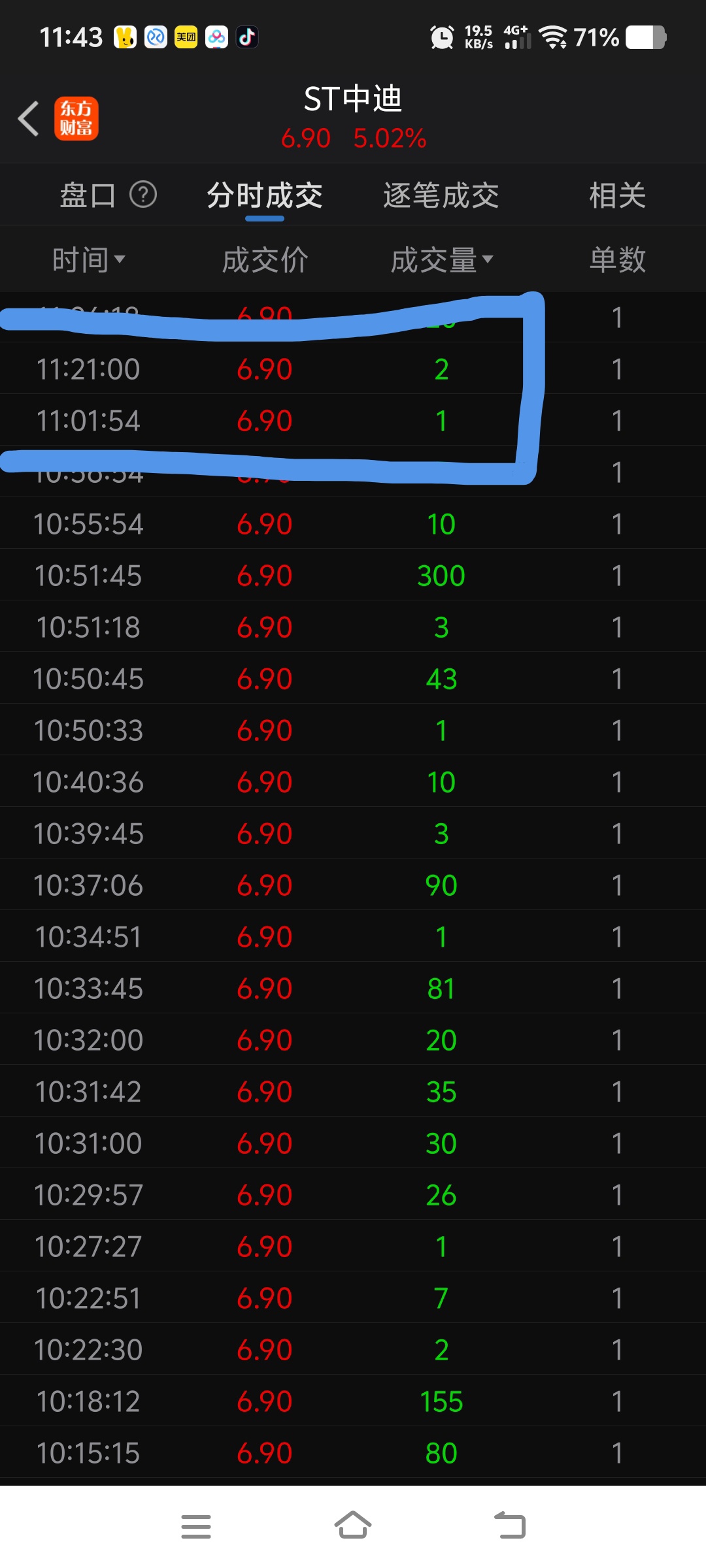 $ST中迪(SZ000609)$ 中迪创造近期盘中零交易时间最长记录!今天11.01——11.21分长达20分钟零成交!