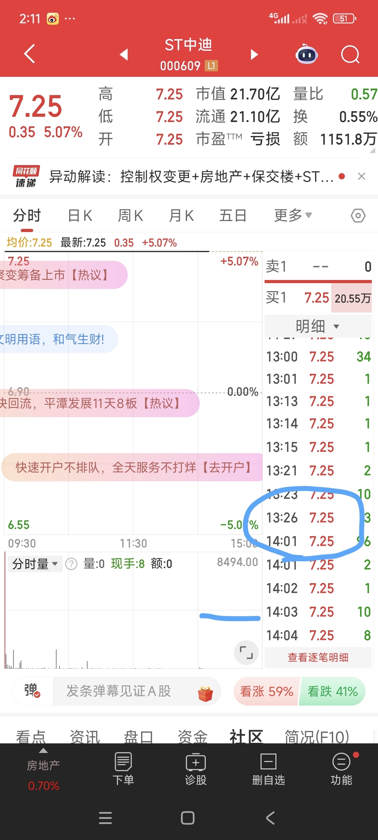 $ST中迪(SZ000609)$ 中迪不断刷新最长时间成交记录,恐怖如斯!