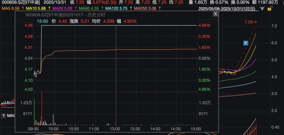 Wind行情数据显示,自10月17日公司股价盘中直线拉升涨停以来,ST中迪股价已经连续11个交易日涨停。