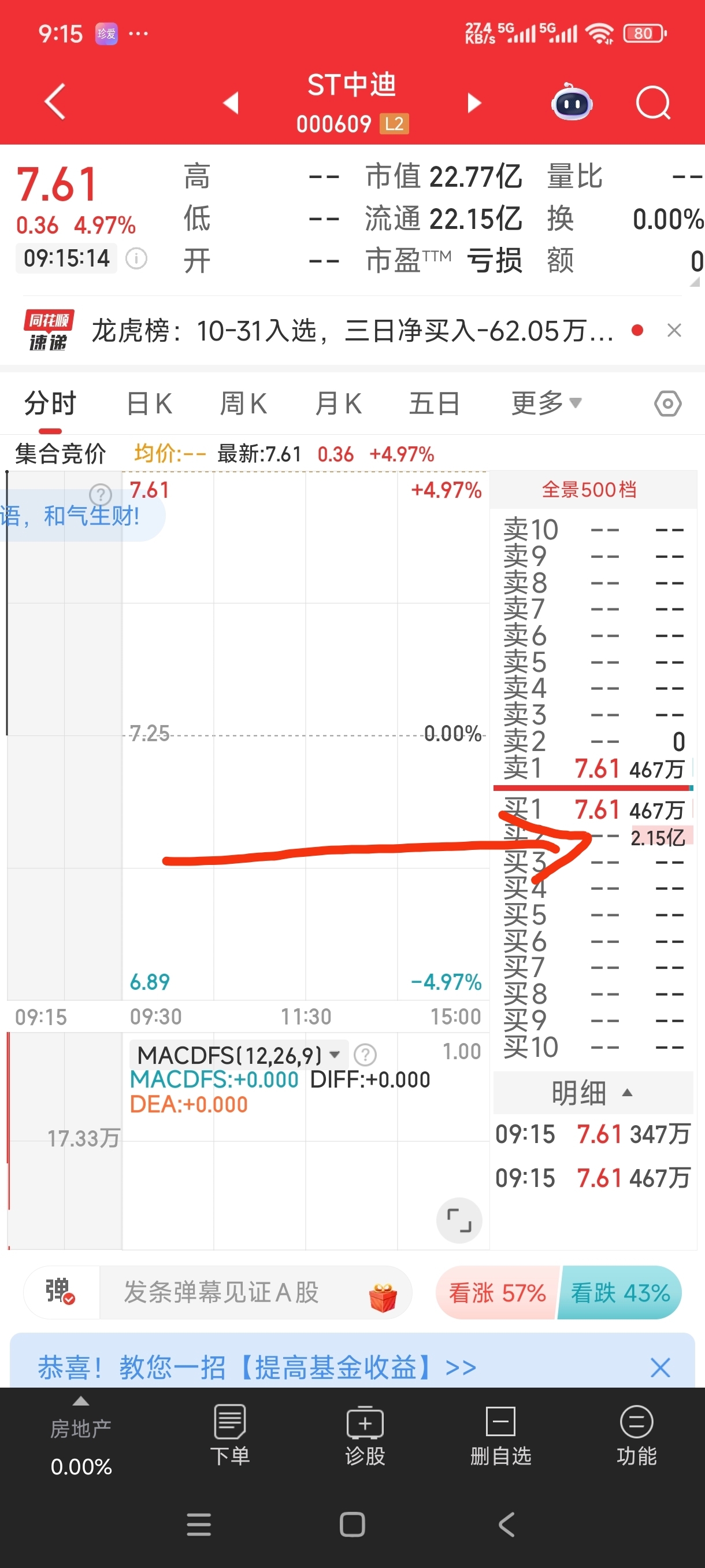 $ST中迪(SZ000609)$ 今天早上2.15亿抢不到