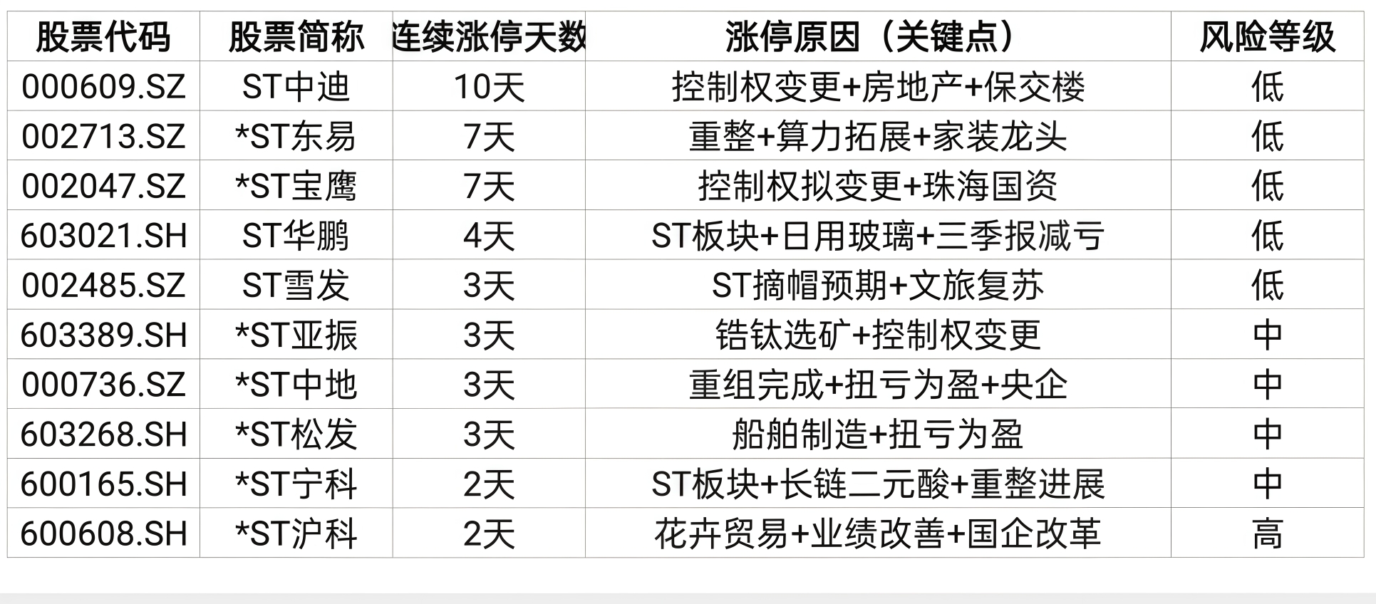 ST连板各股跟踪,图片数据不构成操作建议: